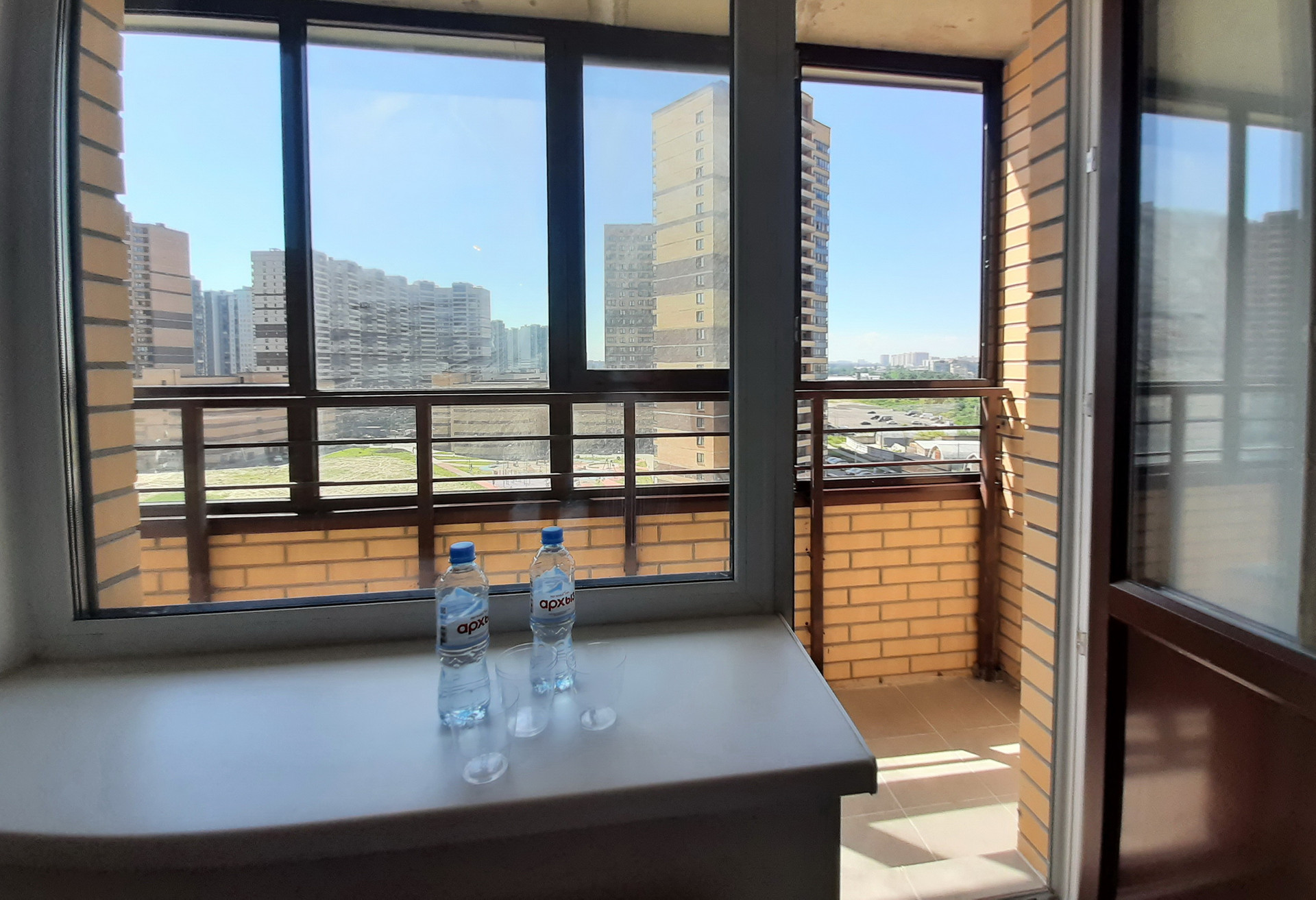 -    Лоджия на всю ширины квартиры остеклена, в том числе, с боковой стороны, на полу лоджии уже уложена плитка;