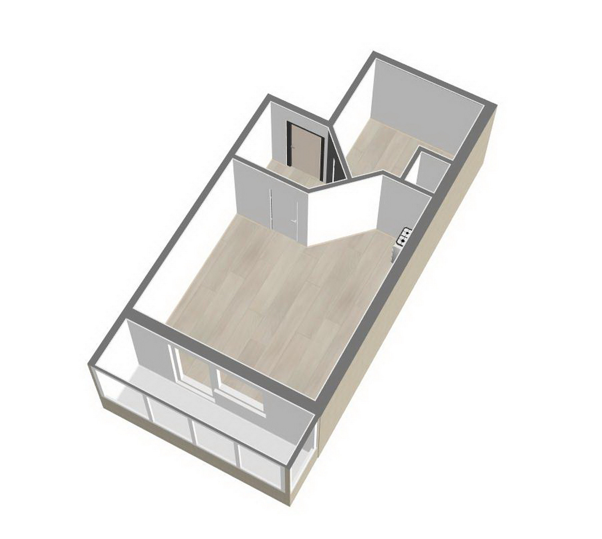 -    Ширина комнаты 4,5м и грамотное расположение оконного блока дают возможность поставить полноценную двуспальную кровать, что крайне редко удаётся в студиях;