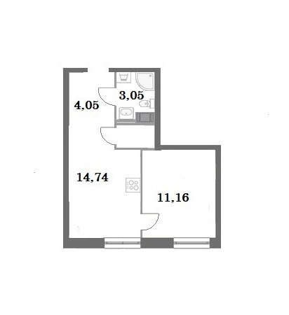 Площадь кухни 14.74 м2