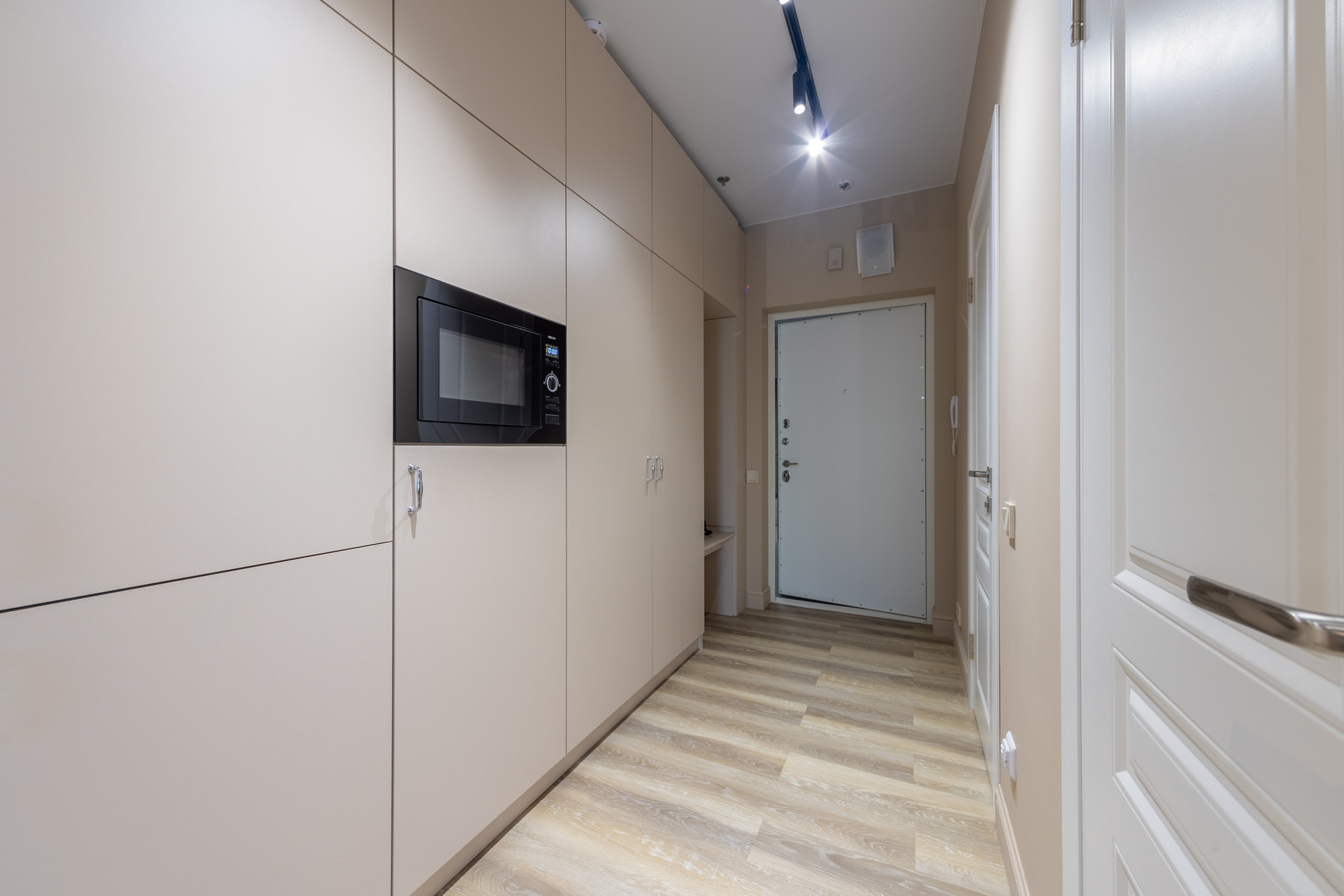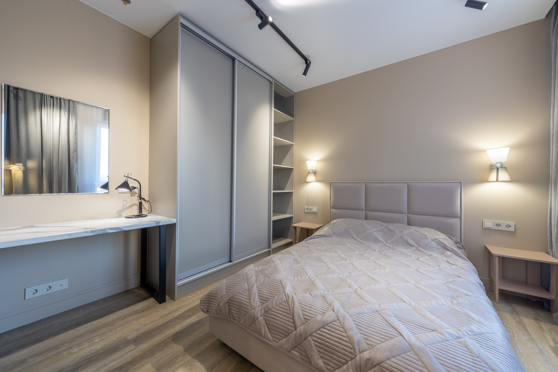 Квартира выполнена по дизайн-проекту с использованием качественных материалов. На полу ламинат, стены покрашены качественной краской, в душевой смеситель с терморегулятором. Встроенная мебель и кухня выполнены на заказ, каменная столешница на кухне и деревянные подоконники добавляют уюта квартире. Вся мебель и техника остаются покупателю!