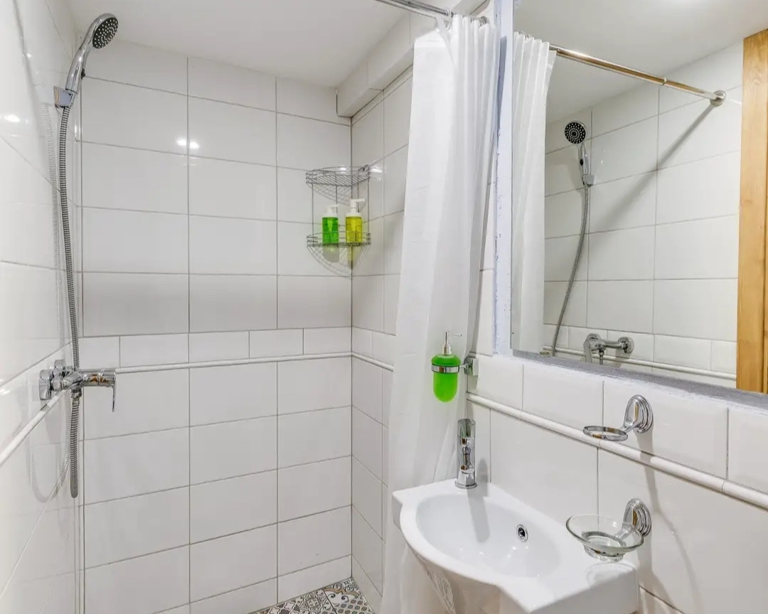 Санузел совмещённый. Пол и стены в кафеле и плитке. Принудительная вытяжка в туалете и на кухне.