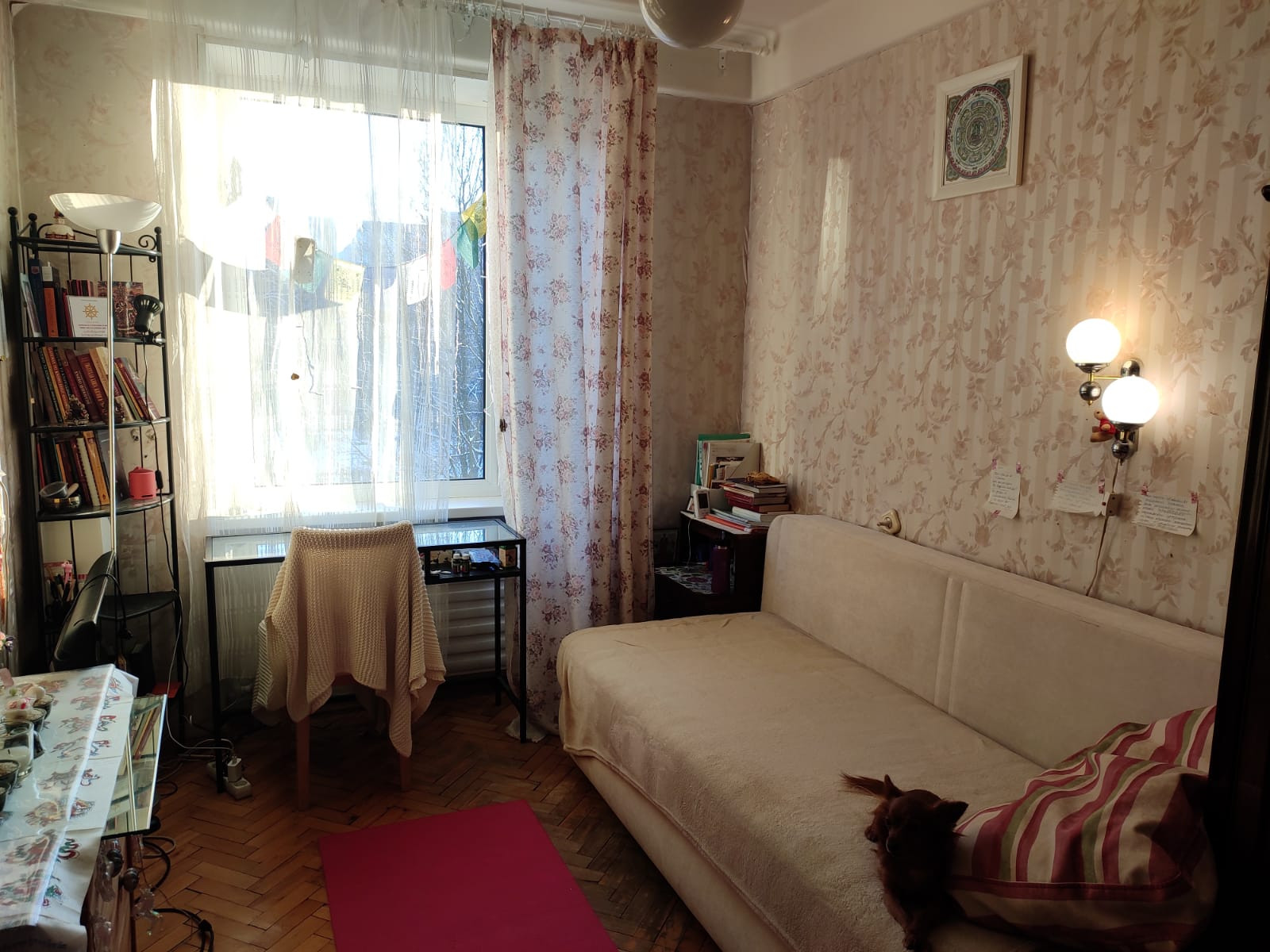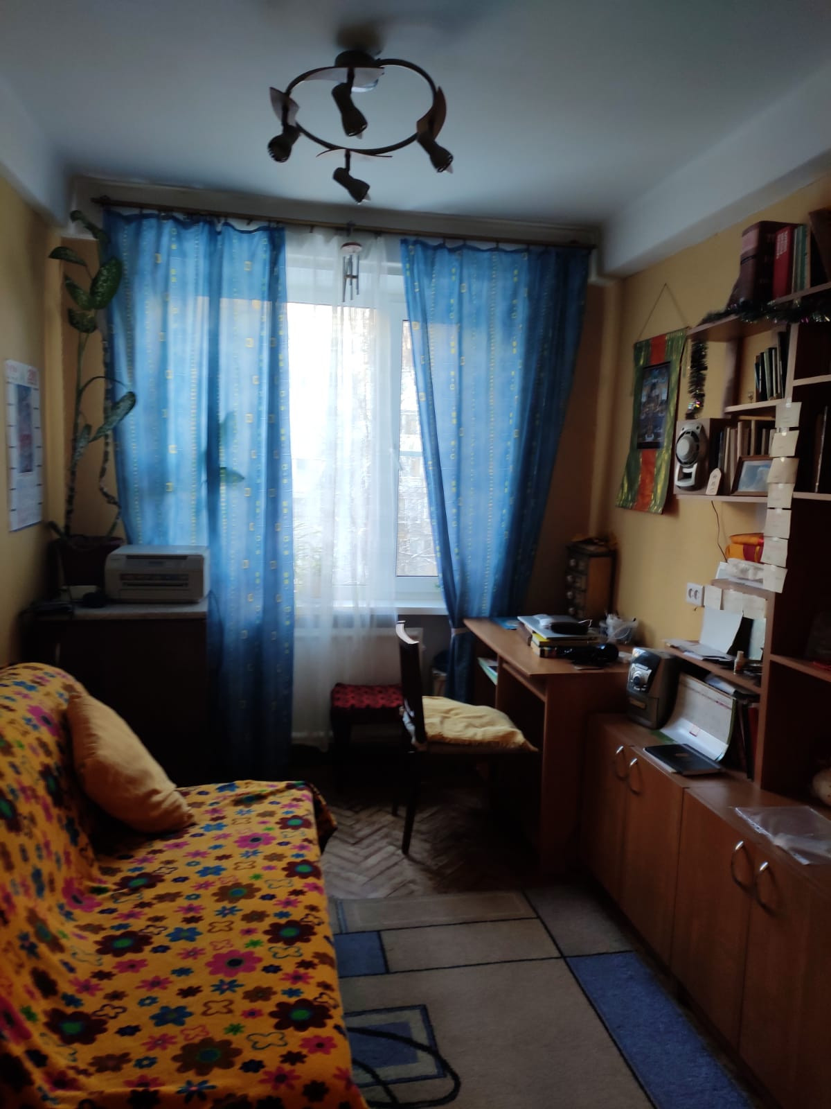 Окна одной комнаты выходят на школу, все остальные комнаты в тихий зеленый двор.
