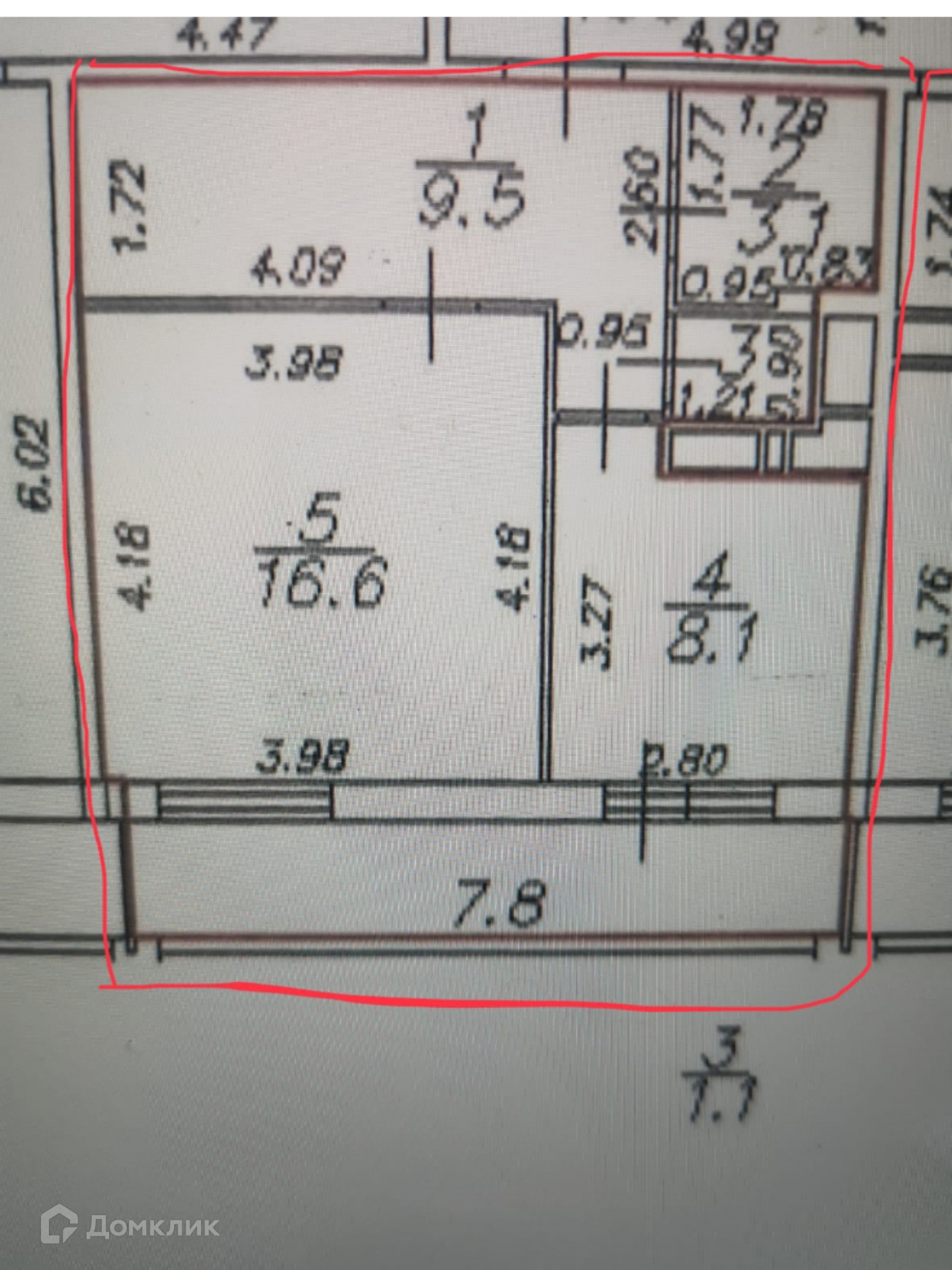 Жилая площадь 16.6 м2