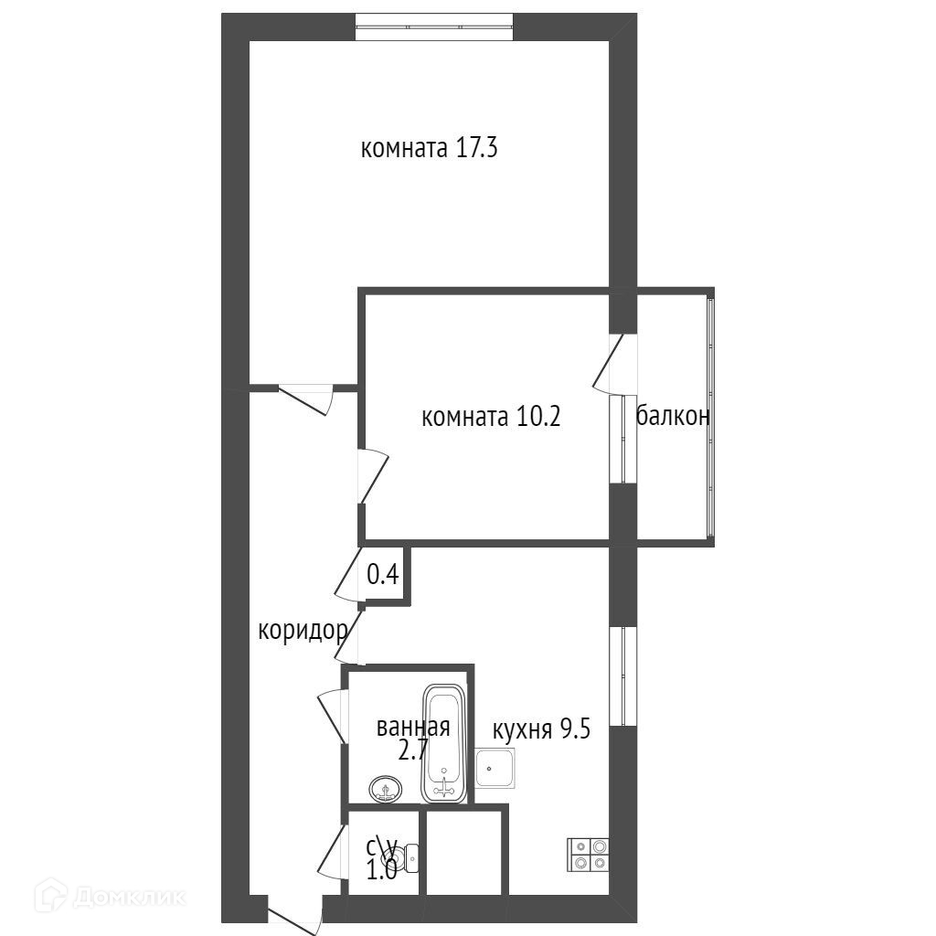 -2 комнаты (17м и 10м), светлая кухня 9,5 м