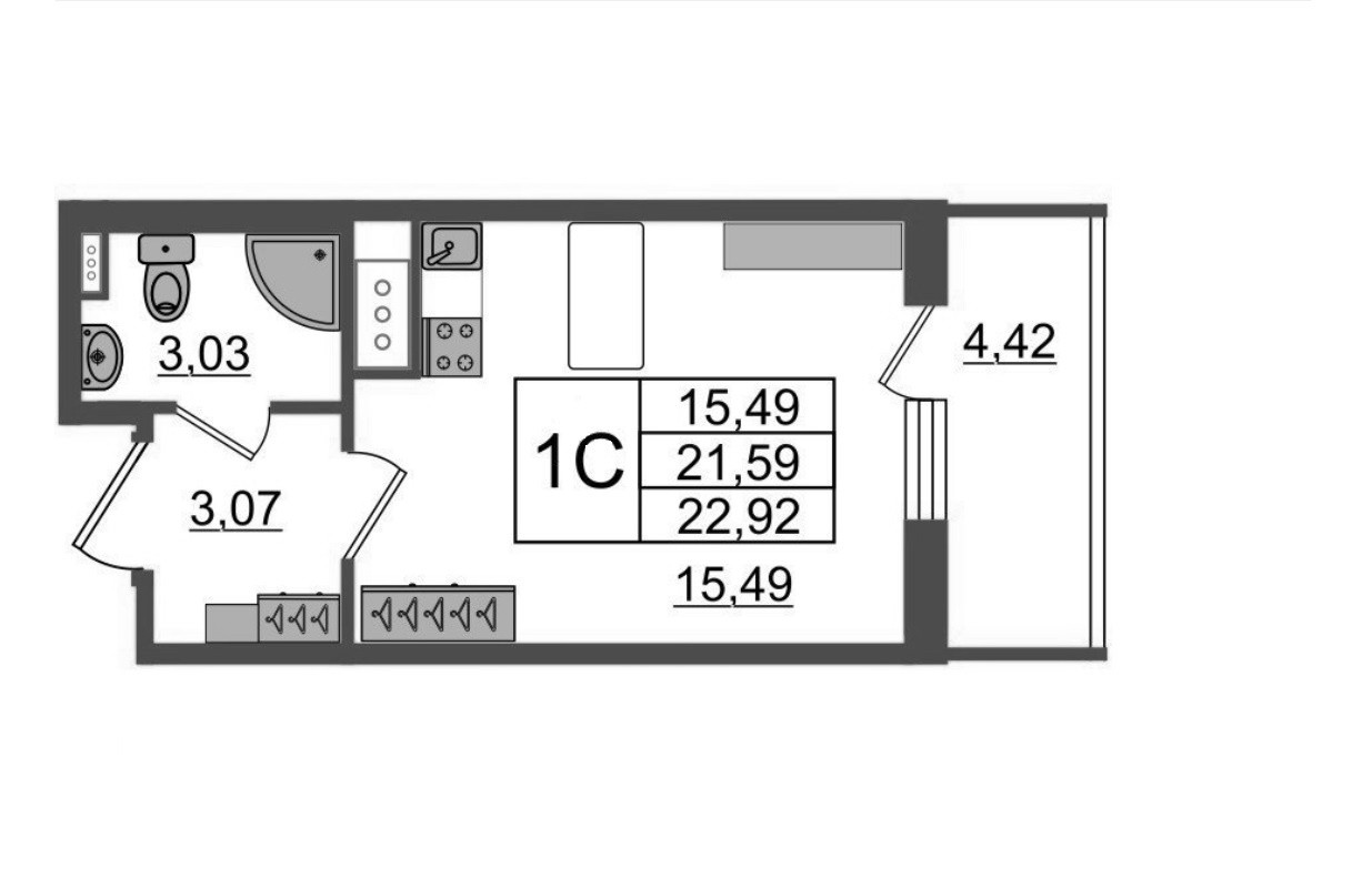Жилая площадь 15.49 м2