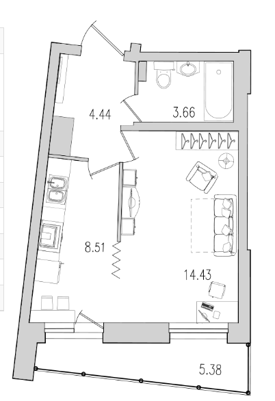 Жилая площадь 14.43 м2