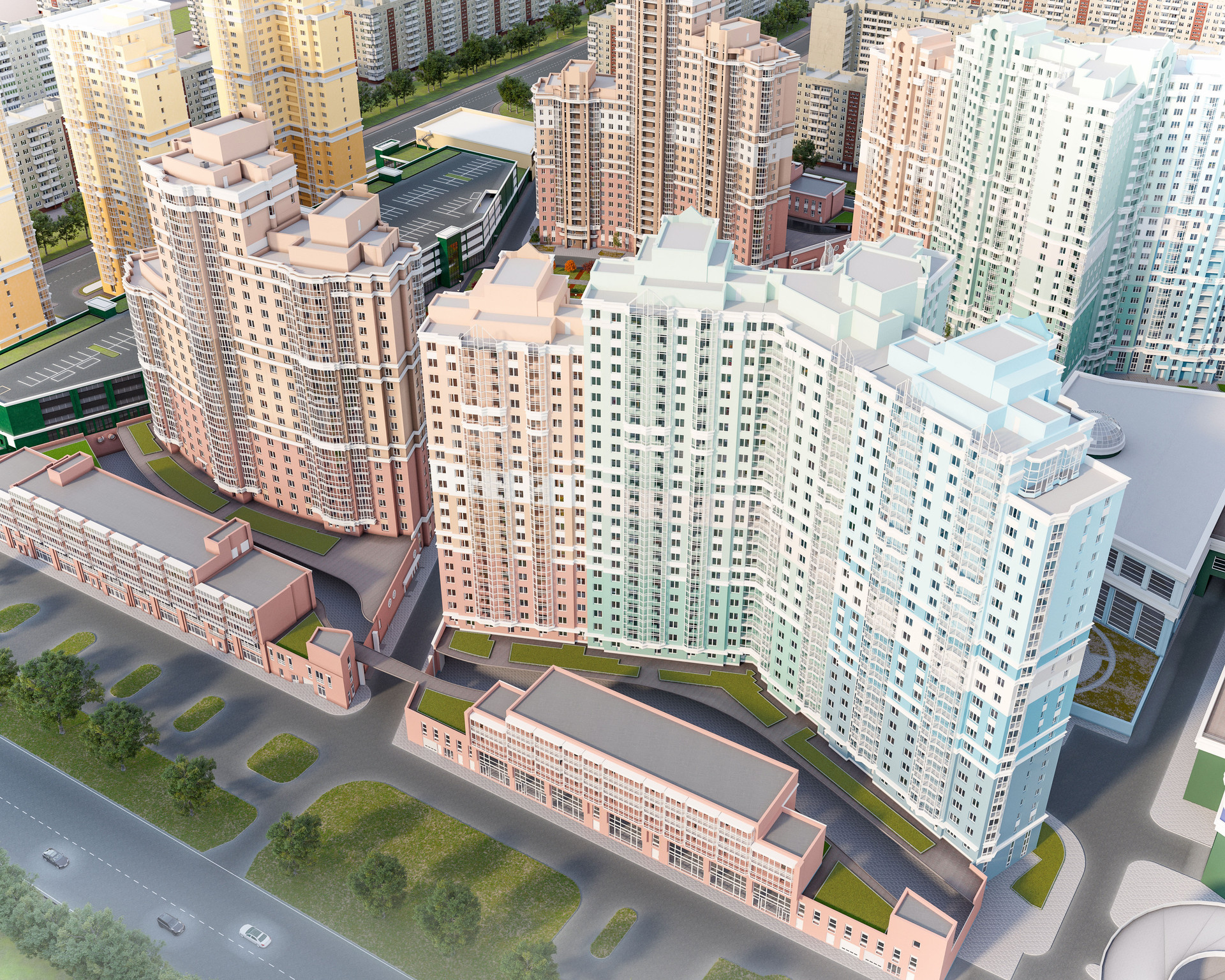 Рядом с ЖК продуктовый гиппермаркет «Перекресток», готовится к открытию ТРК , площадью более 60 000 кв.м, в котором разместятся магазины, кафе, рестораны и объекты досуга.