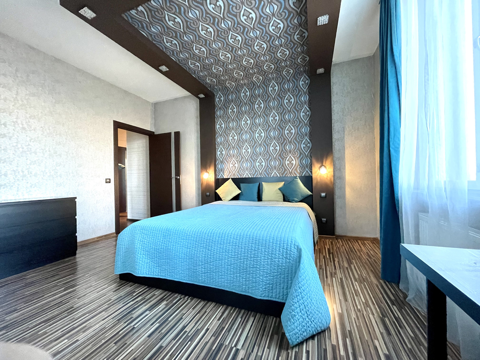Светлая и уютная квартира общей площадью 92,8 м2 (без учета лоджии). Большая кухня-гостиная общей площадью 33,2 кв м, изолированные комнаты 16,8 и 11,5 кв.м, есть застекленная лоджия. Два санузла – один из которых 10,6 кв.м с большой угловой ванной-джакузи, во втором санузле установлена душевая кабина. Есть гардеробная и кладовка. В квартире произведен качественный ремонт из современных материалов, в комнатах на полу - ламинат, на кухне и в санузлах – кафель, везде, где плитка, установлены теплые полы, сплит-система кондиционирования. В стоимость квартиры входит встроенная кухня с бытовой техникой Bosch, а также вся мебель и техника с фотографий. Была произведена перепланировка квартиры, которая узаконена. Квартира двухсторонняя, из окон открывается шикарный вид на Шуваловские озера и парк.