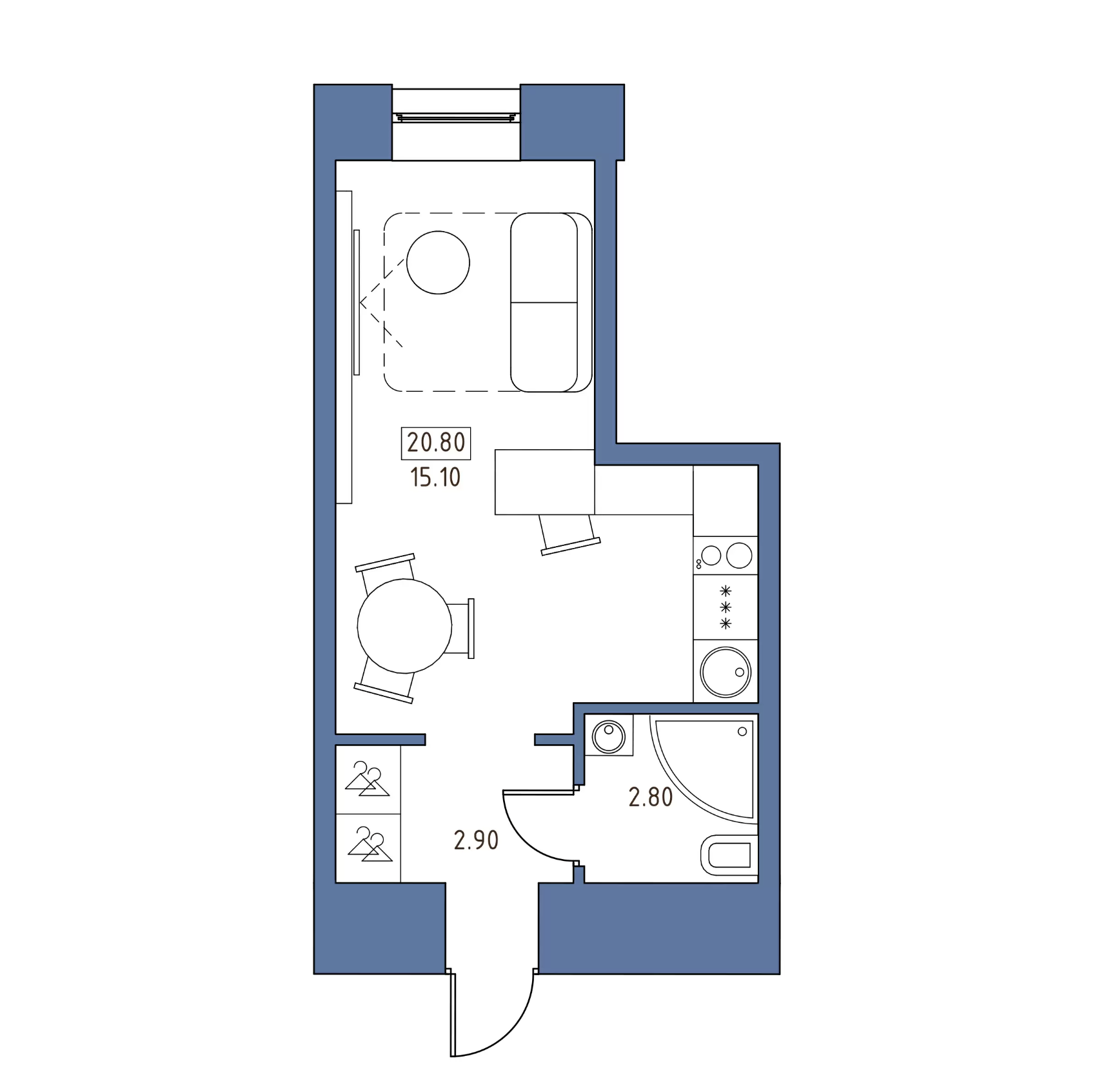 Общая площадь 20.8 м2