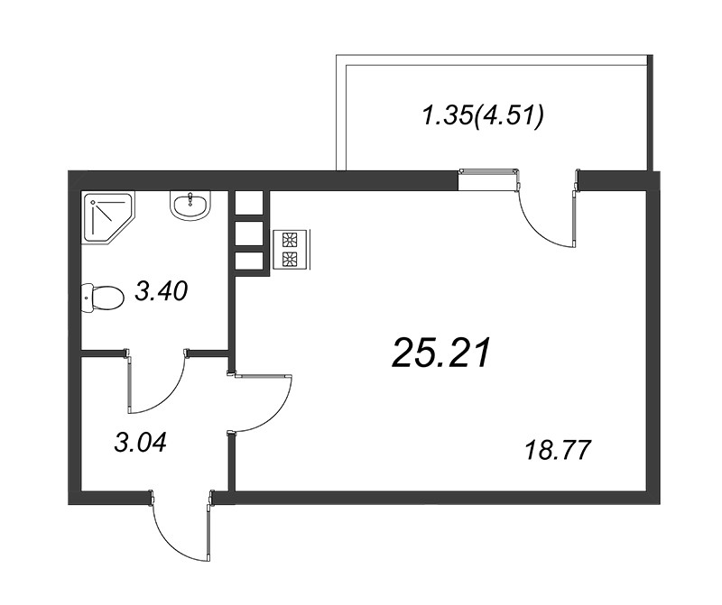 Общая площадь 25.62 м2