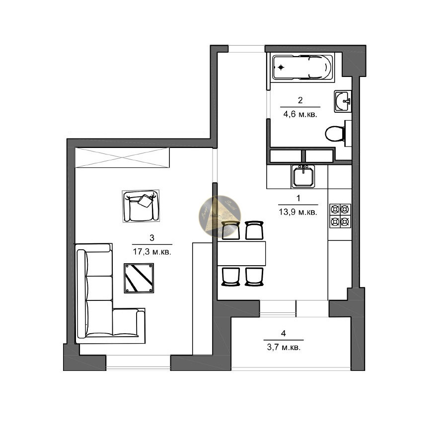 ➖ Общая площадь-39,5 кв. метров.