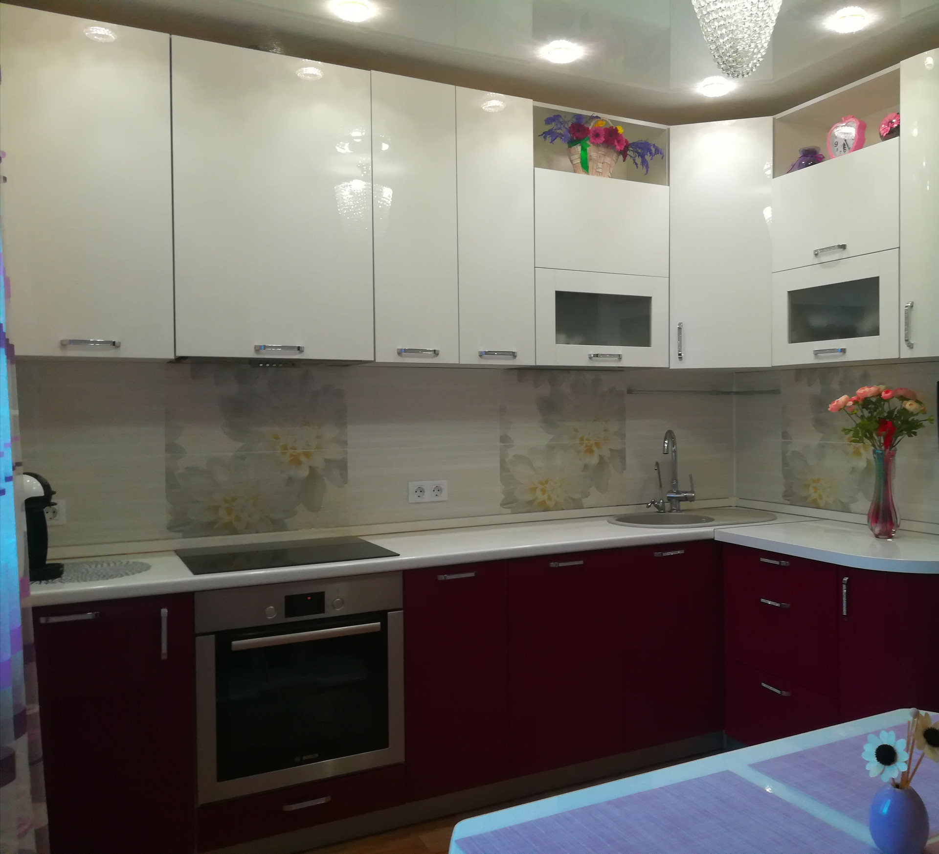 Кухонный гарнитур со встроенной  индукционной варочной  поверхностью, встроенная каменная мойка с  трехступенчатой системой очистки  воды остаются!
