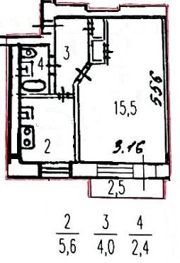 Жилая площадь 16 м2