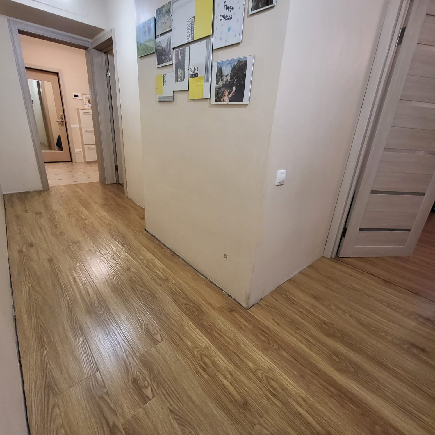 В квартире полностью заменена электрика. Произведена разводка труб, полы тёплые, установленв датчики движения света, окна-стеклопакеты, полы в комнатах- добротный ламинат, новые радиаторы отопления. Санузел раздельный, кафель. Чистый подъезд. Два лифта.