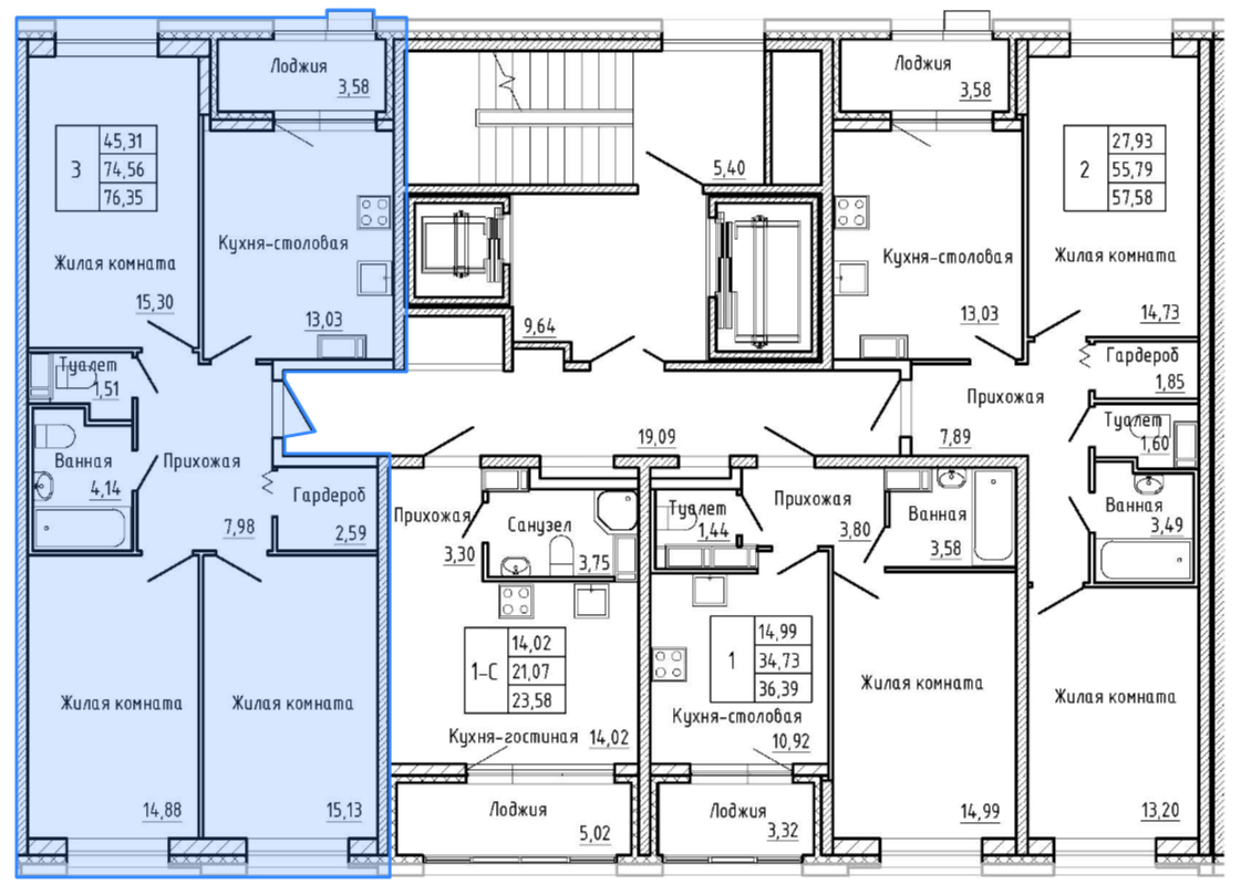 Общая площадь 76.35 м2