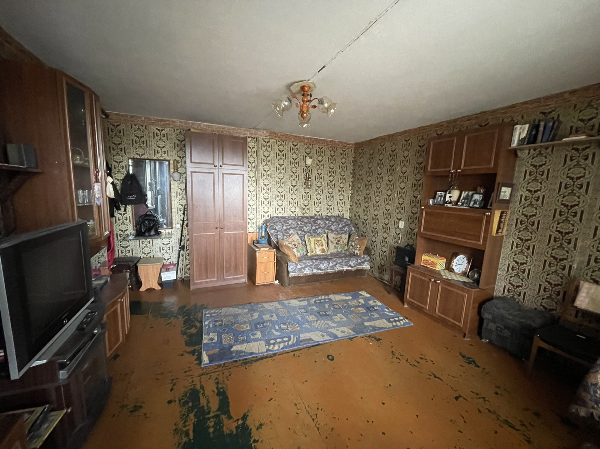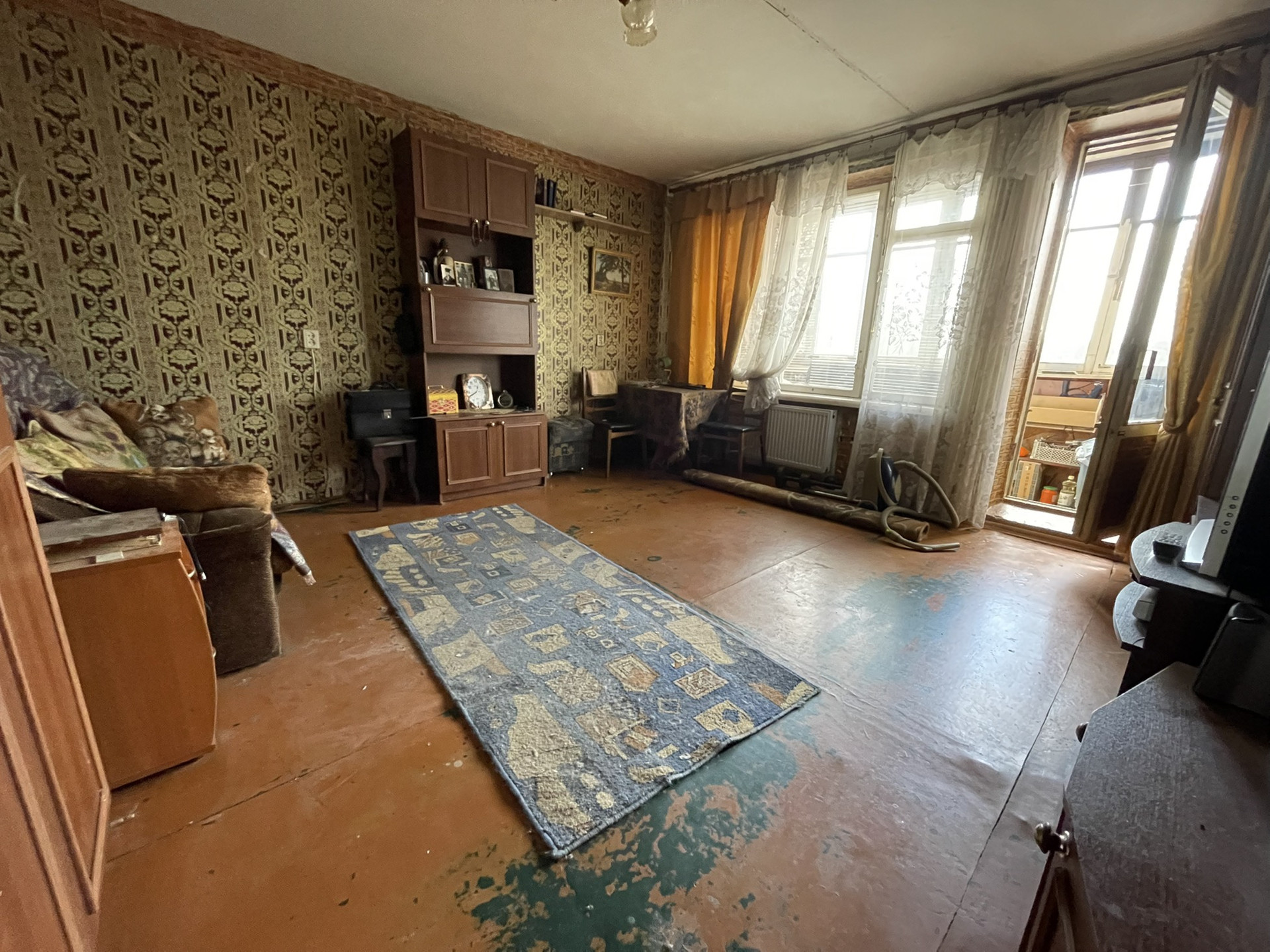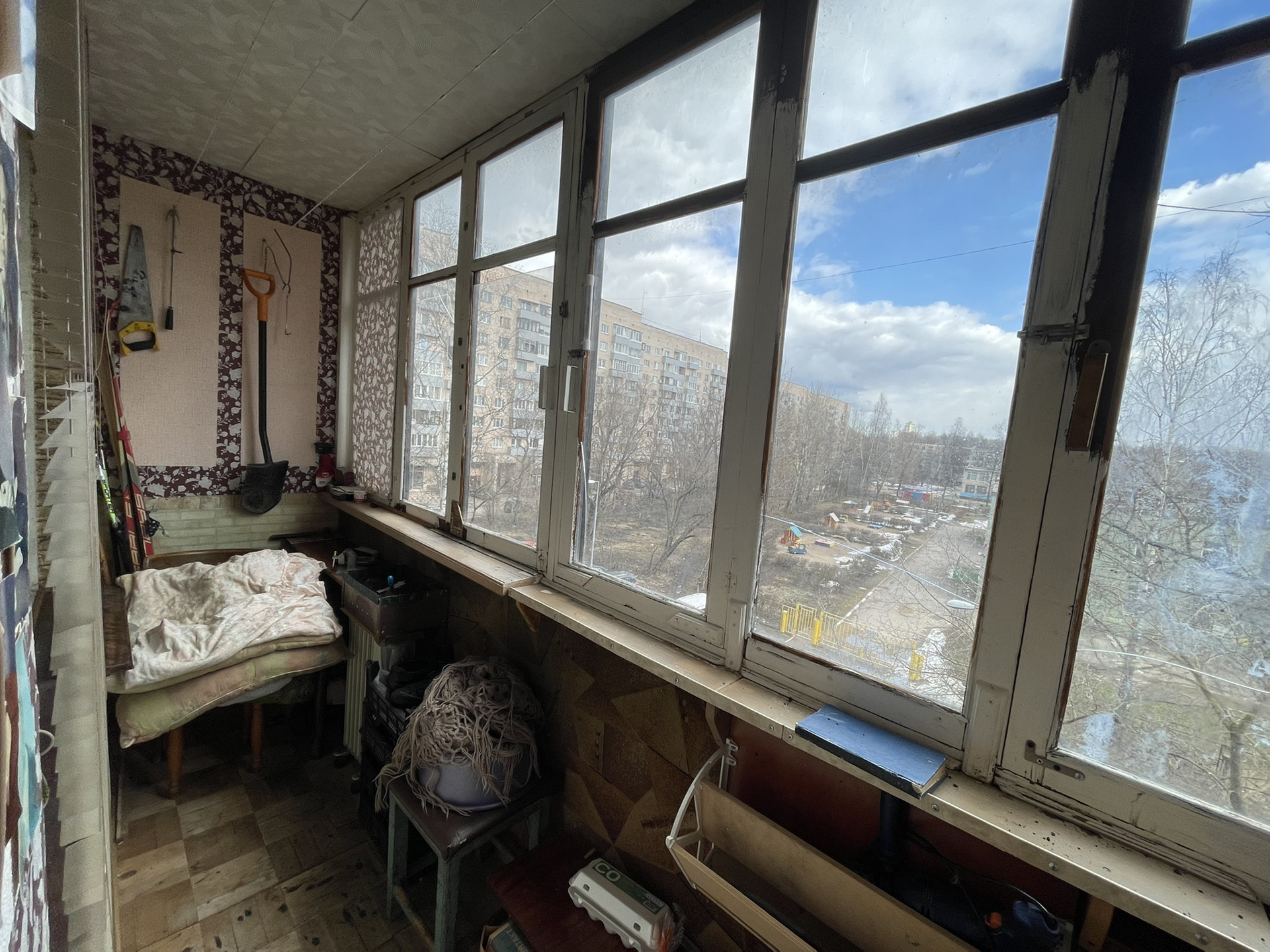 Все окна смотрят в тихий двор, спокойные соседи. Во дворе школа и детский сад. Квартира требует ремонта.