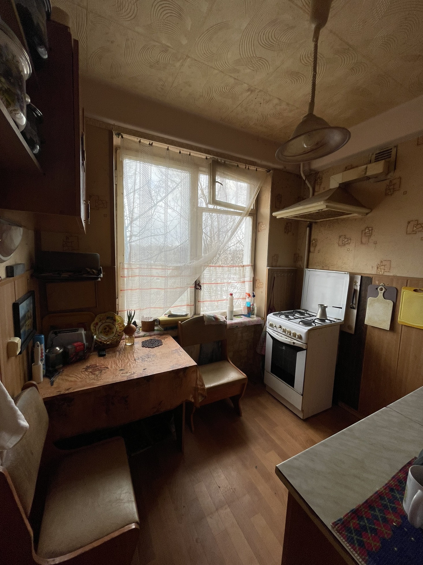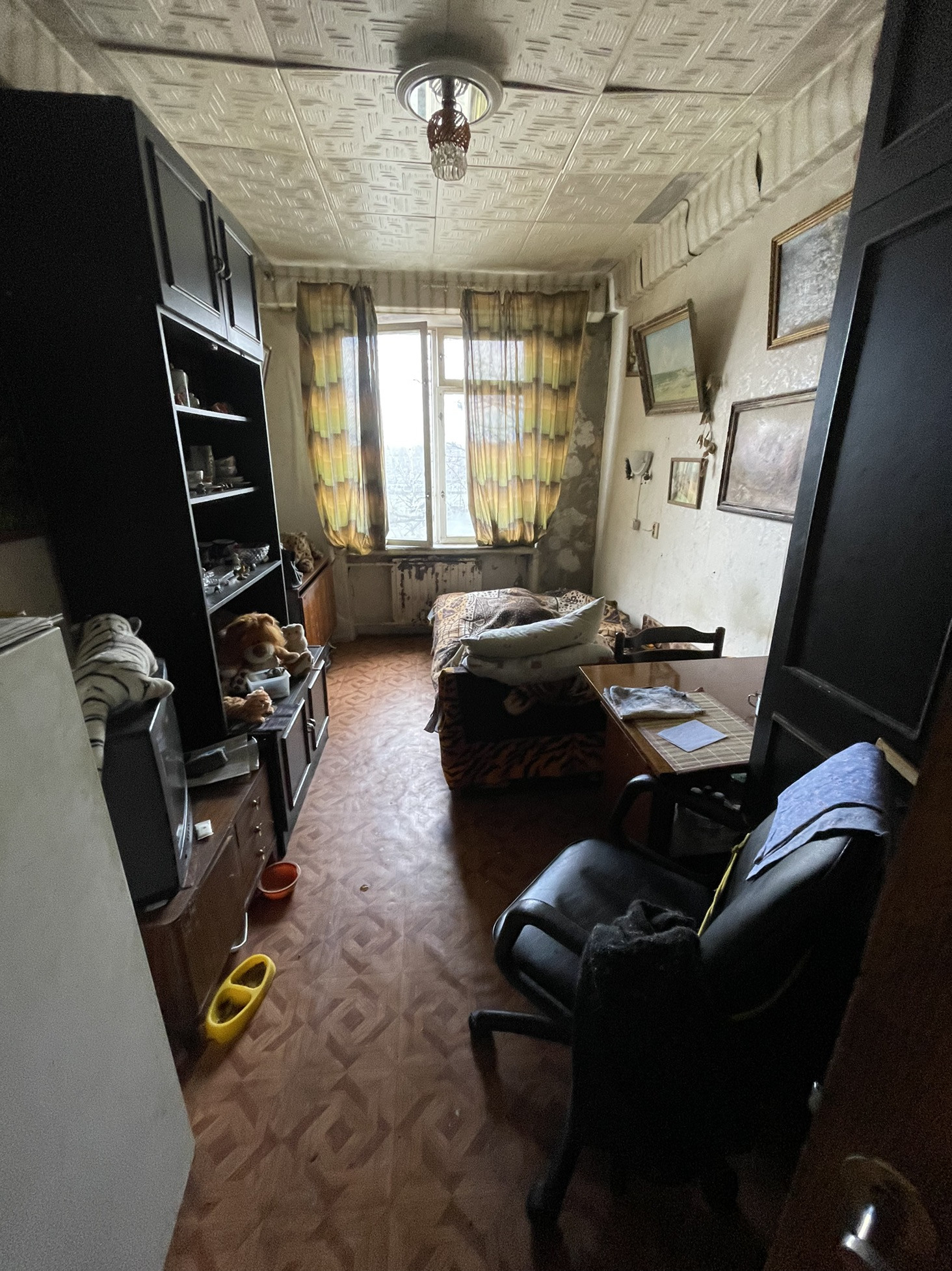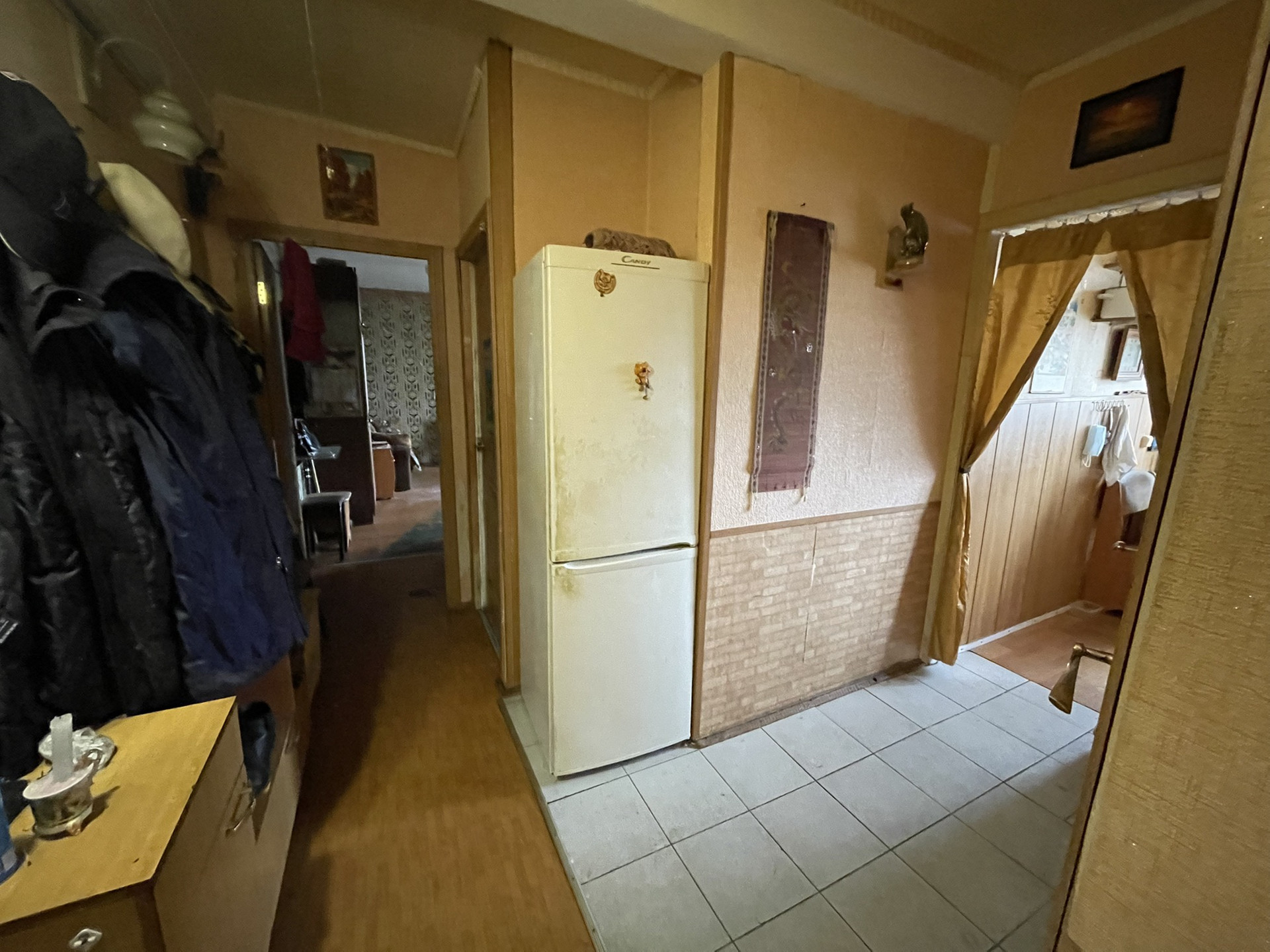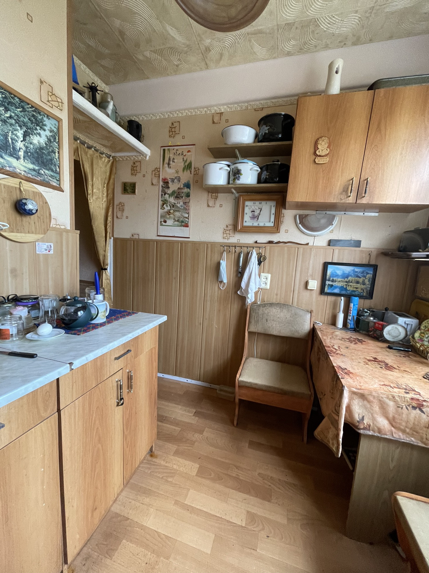Все окна смотрят в тихий двор, спокойные соседи. Во дворе школа и детский сад. Квартира требует ремонта.