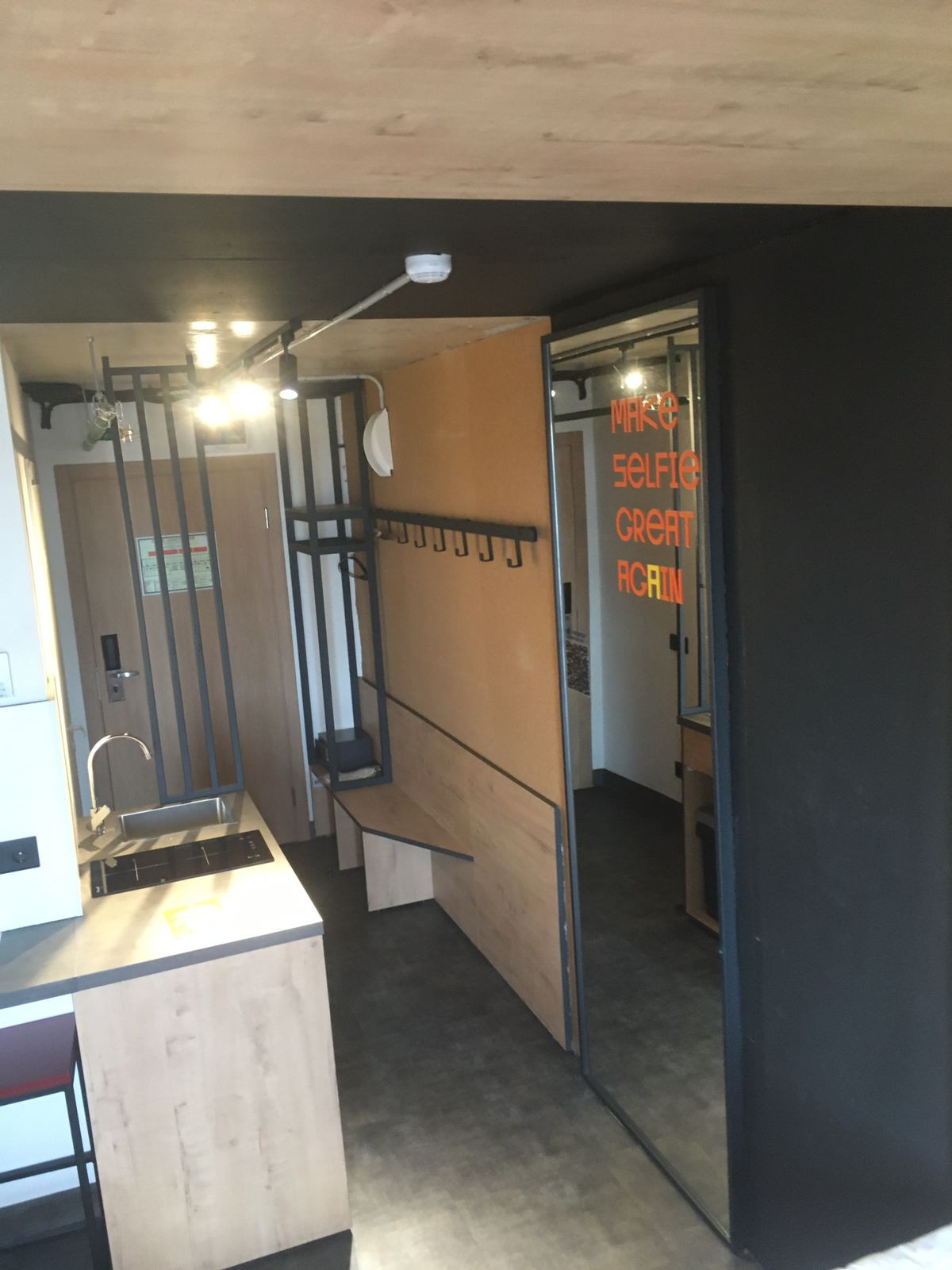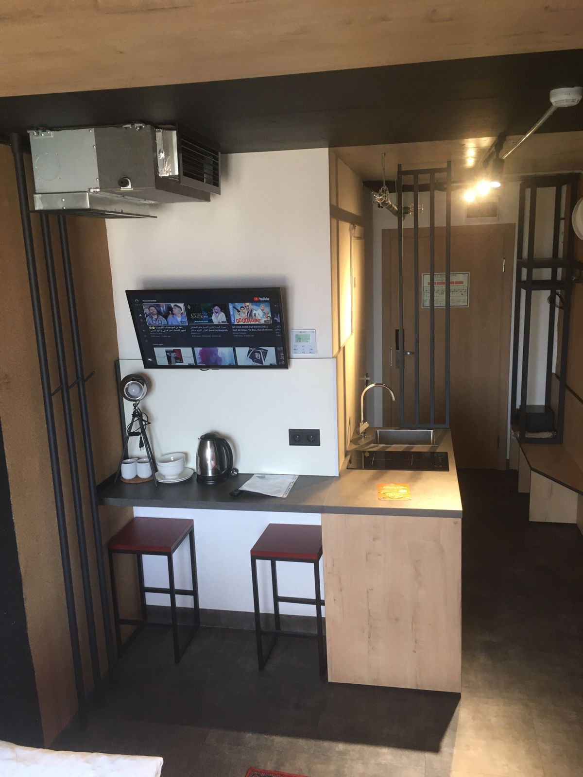Апартамент полностью оборудован. Кухонный гарнитур, плита, микроволновка, посуда, кровать, место для хранения вещей. Совмещённый санузел. Ремонт в стиле Лофт.