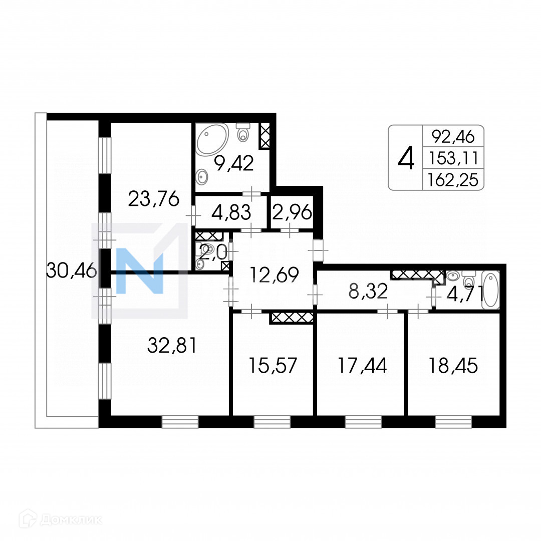 4-комнатная квартира, 167 м2, этаж 9 / 9, на продажу в Санкт-Петербурге