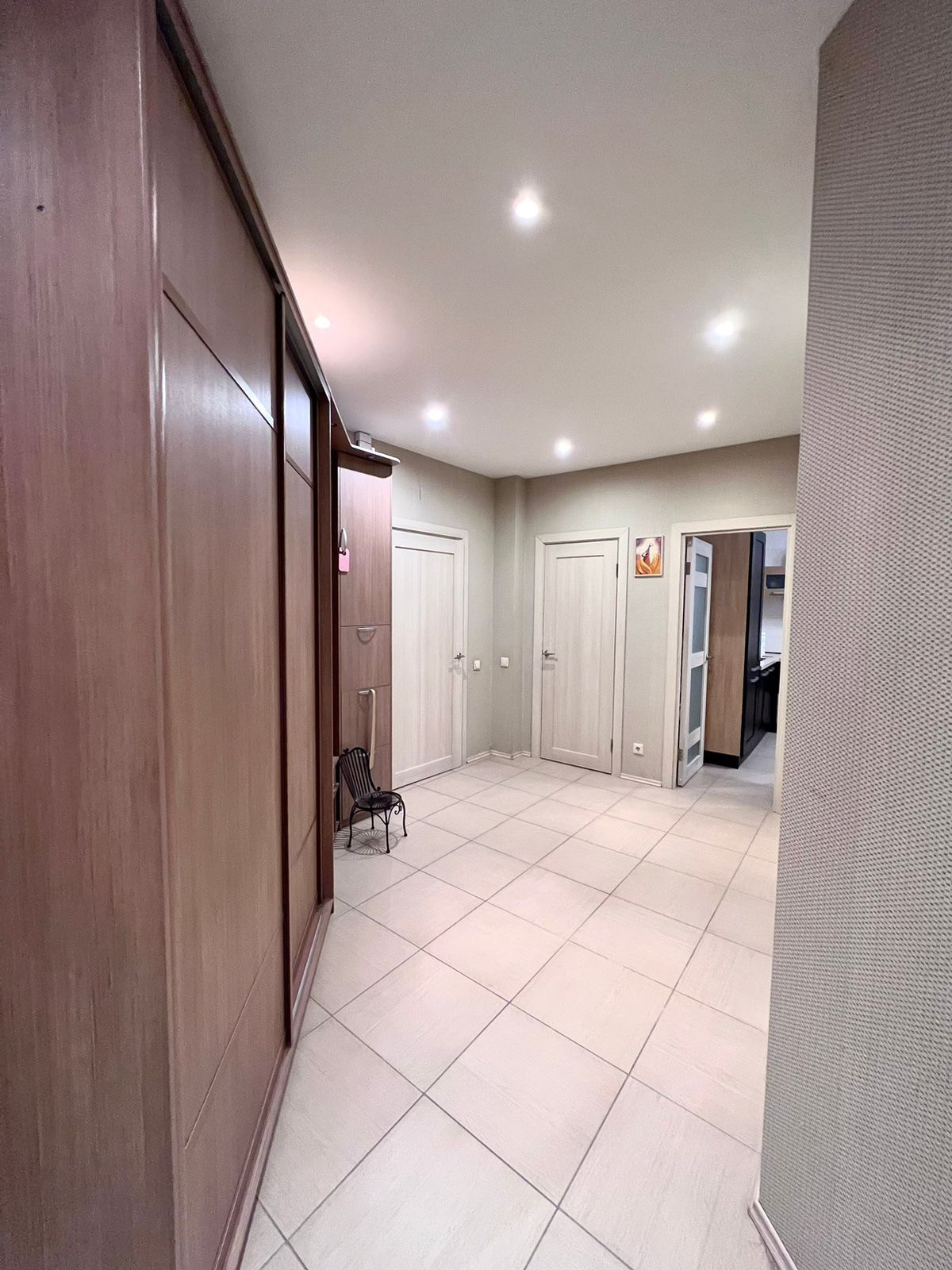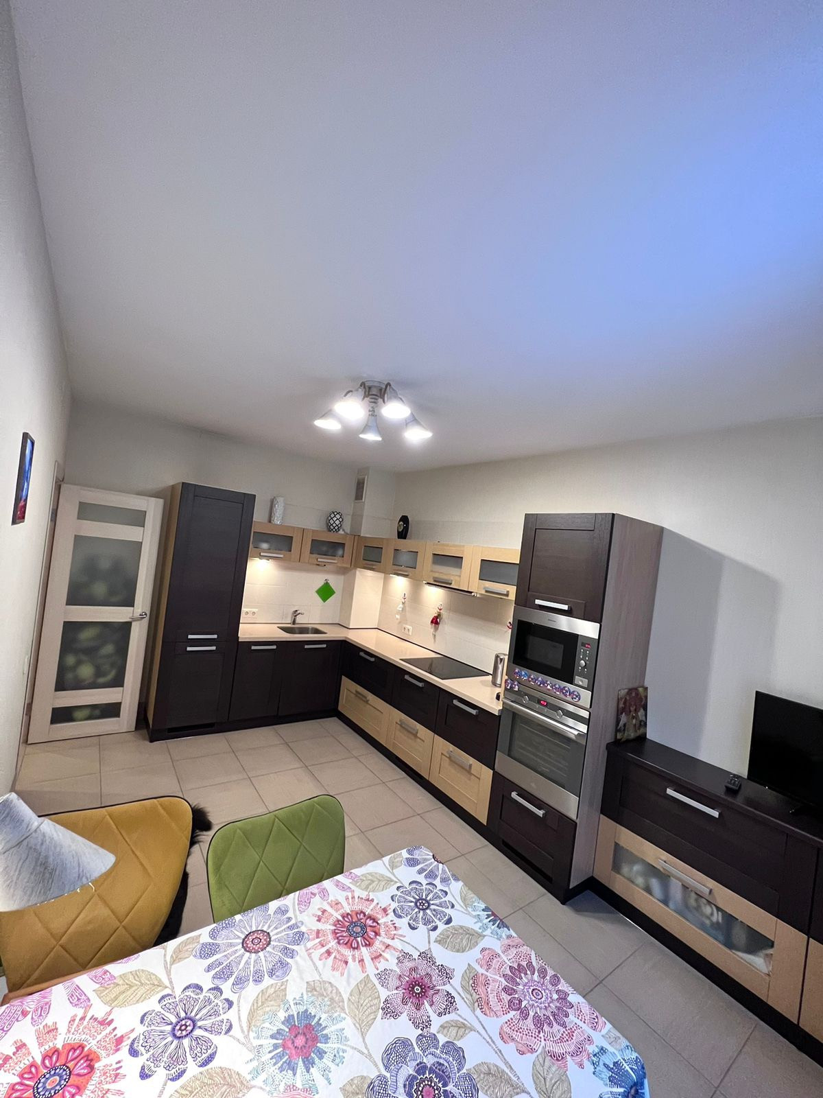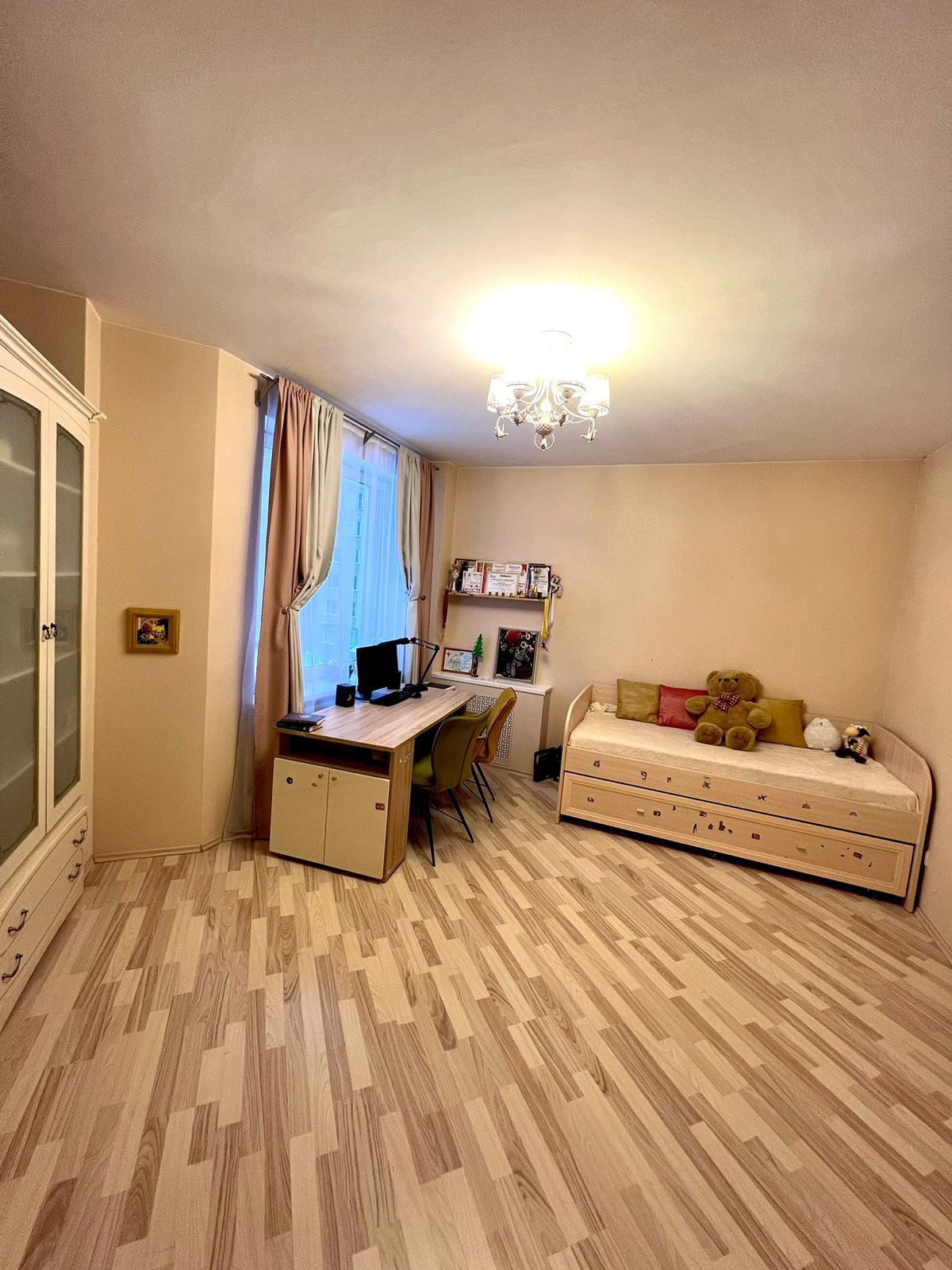 Евроремонт. Две изолированные комнаты. Встроенная кухонная мебель укомплектована всей необходимой техникой: посудомоечная машина, холодильник, плита, вытяжка. 2 спальни, одна с выходом на большой застекленный балкон. Раздельный санузел. Гардеробная.