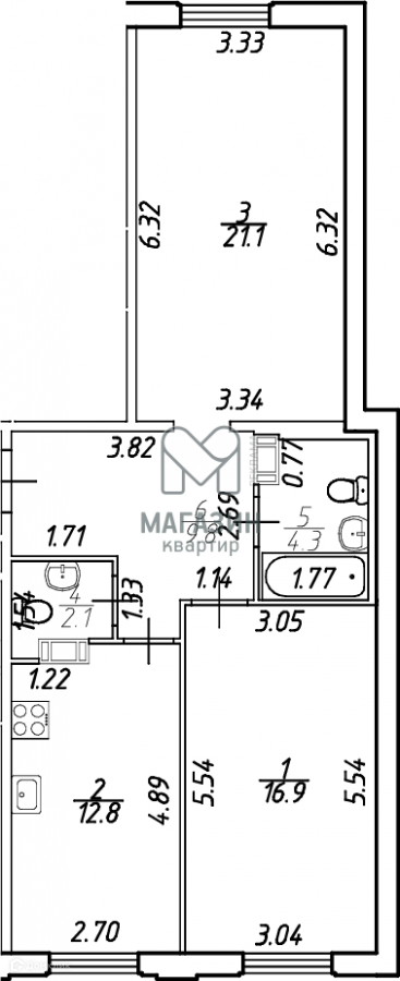 Общая площадь 67 м2
