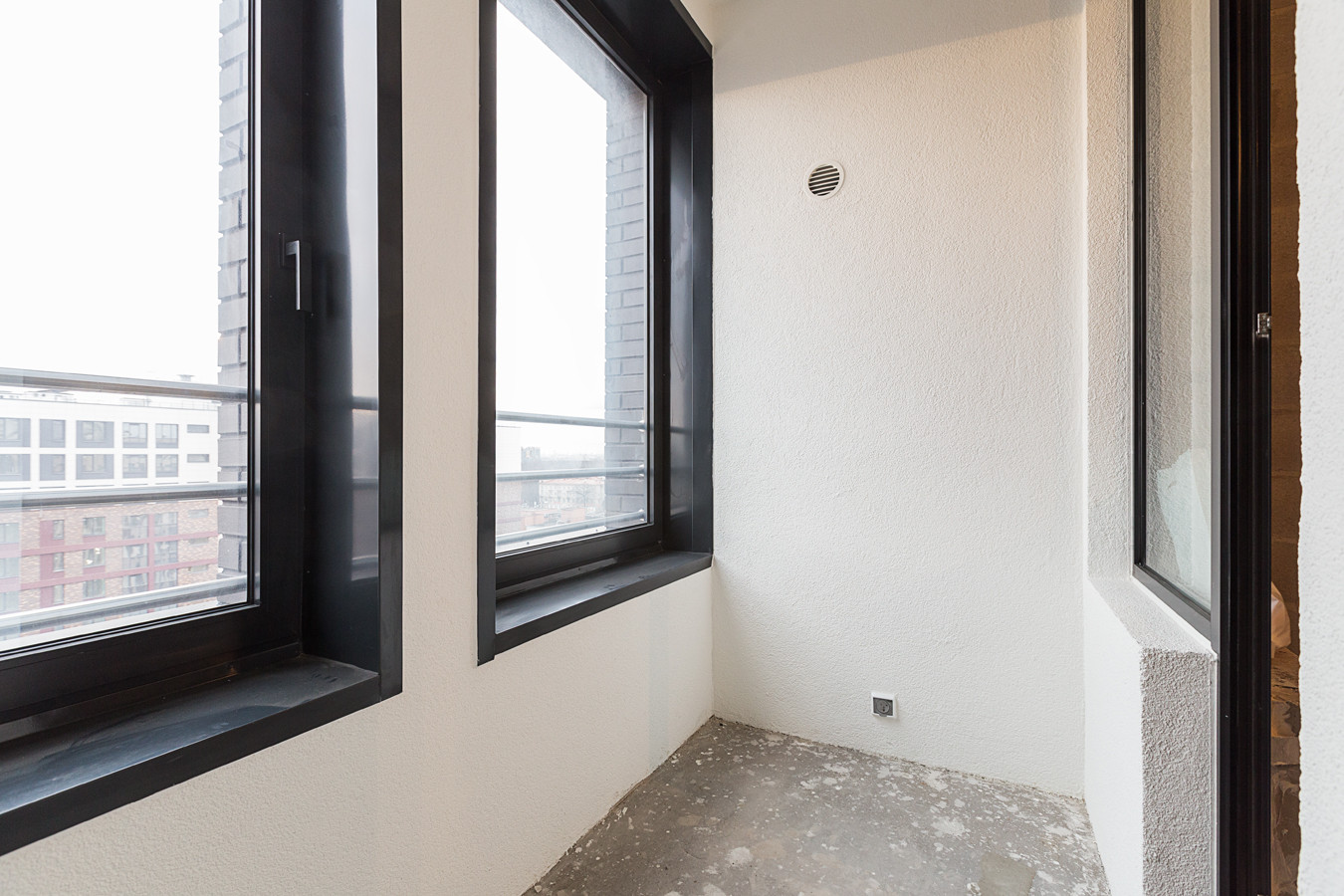 - В квартире предусмотрено: безрамное остекление лоджии, клапаны инфильтрации воздуха и места для установки кондиционеров