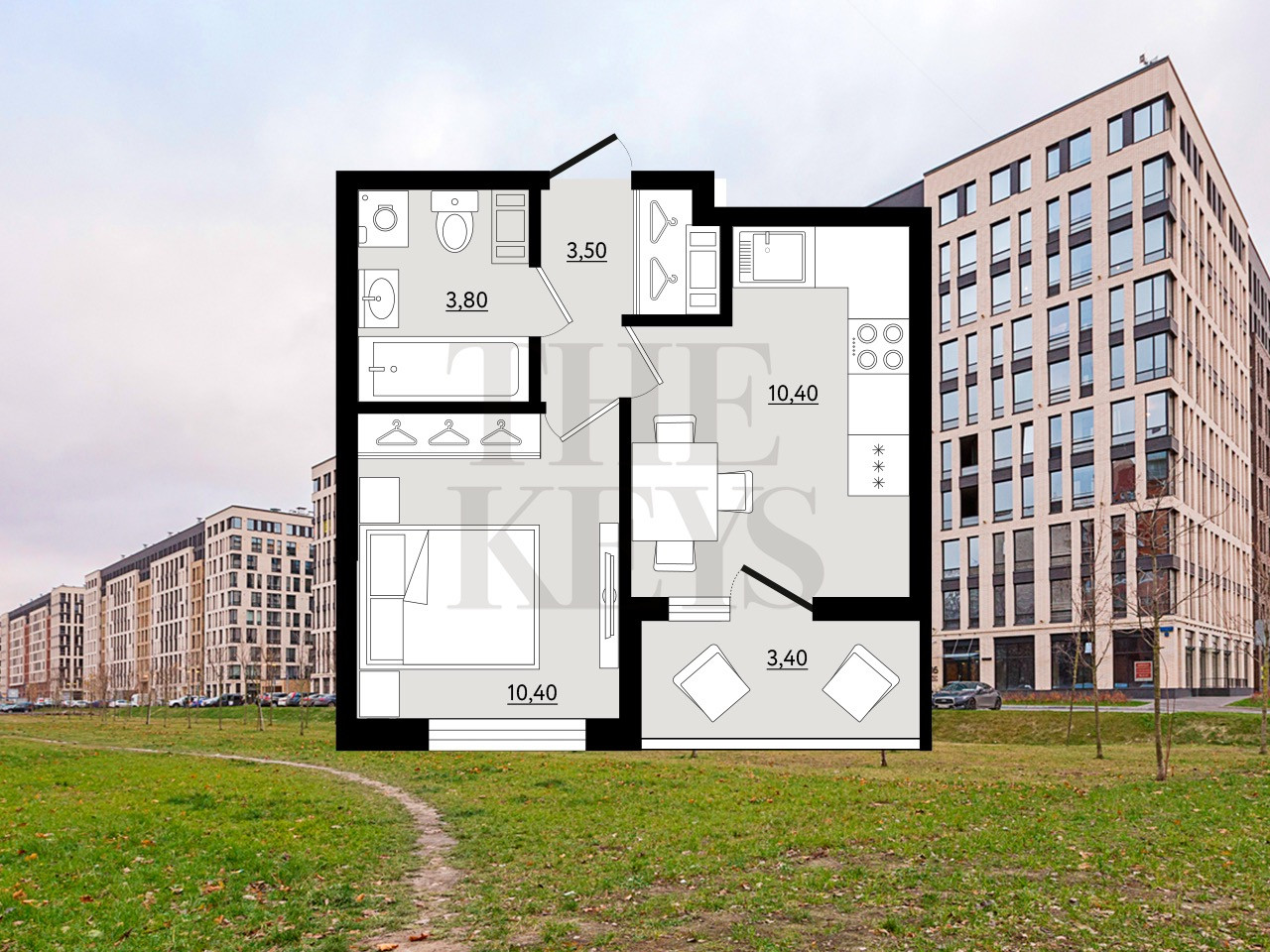 1-комнатная квартира, 29.8 м2, этаж 10 / 10, на продажу в Санкт-Петербурге, Манчестерская улица, 3