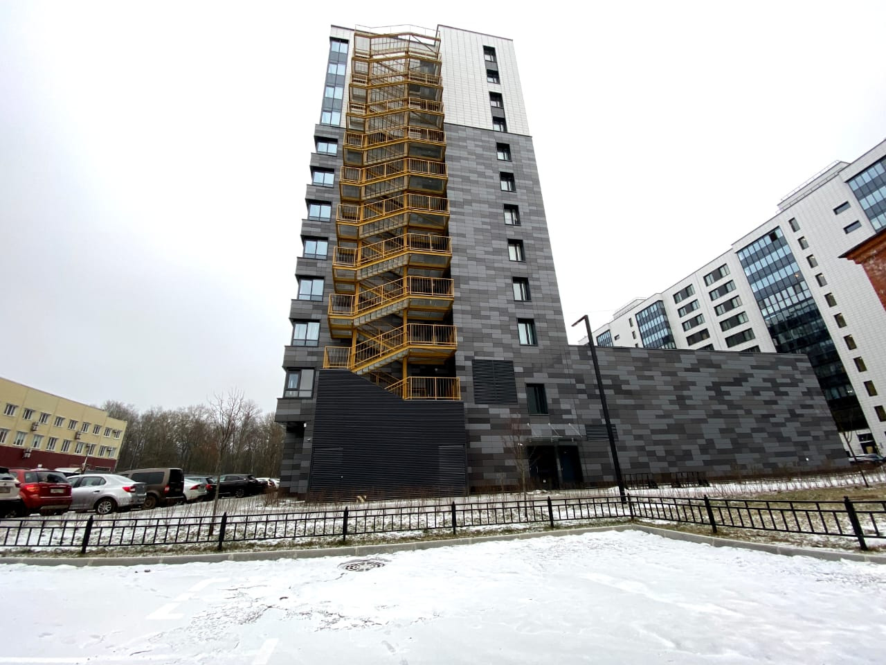 Дом кирпично-монолитный, навесной вентилируемый фасад облицован керамогранитом+ светоотражающее остекление. Год постройки 2020.  Дизайнерское оформление парадной. 3 лифта. Запасной пожарный выход прямо с этажа.