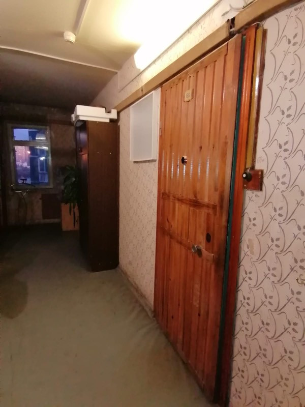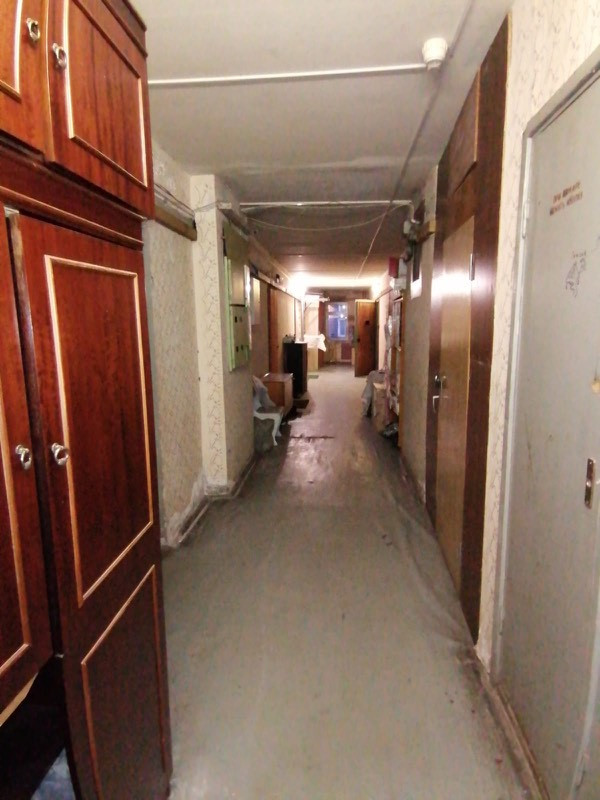 На этаже имеется общественная кухня, которая используется соседями как кладовое помещение площадью около 13 кв.м.