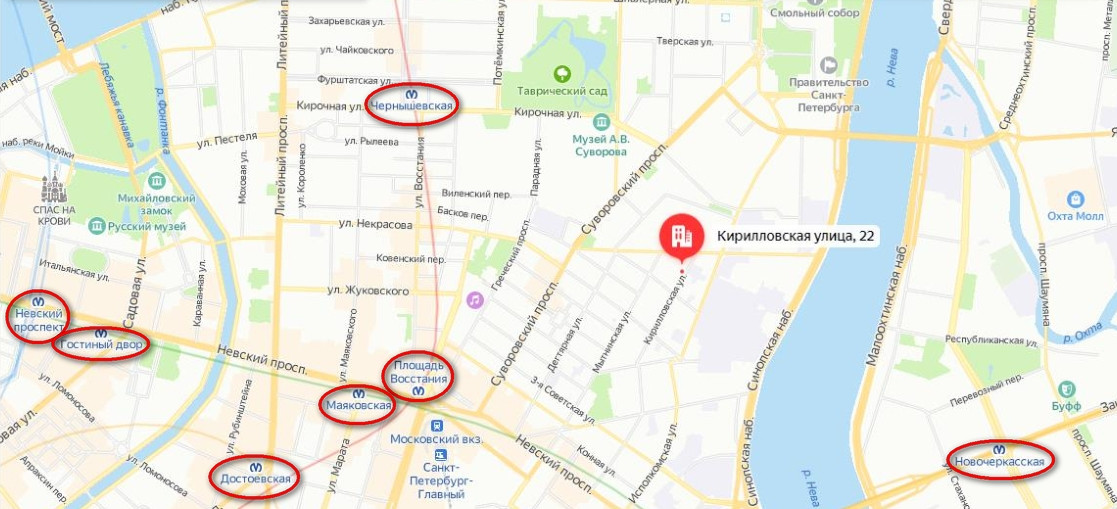 Адрес: город Санкт-Петербург, Центральный район, улица Кирилловская, дом 22.