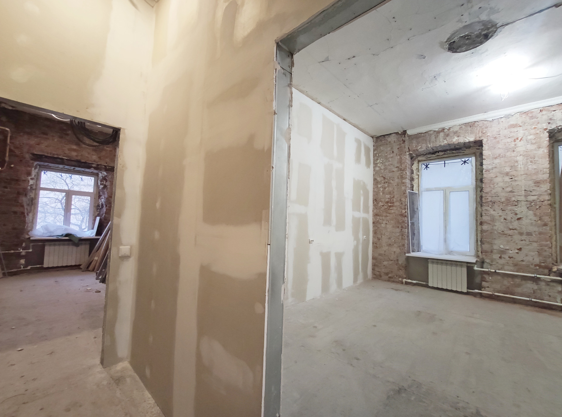 Высокие потолки 3,57 м. - идеально для планировки двухэтажных студий.