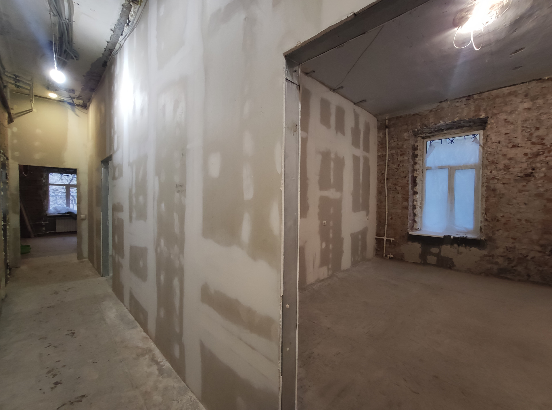 Кирпичный дом. В 1959 году осуществлён капитальный ремонт. Материал перекрытий: металлические балки.
