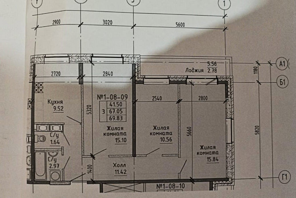 Общая площадь 67 м2