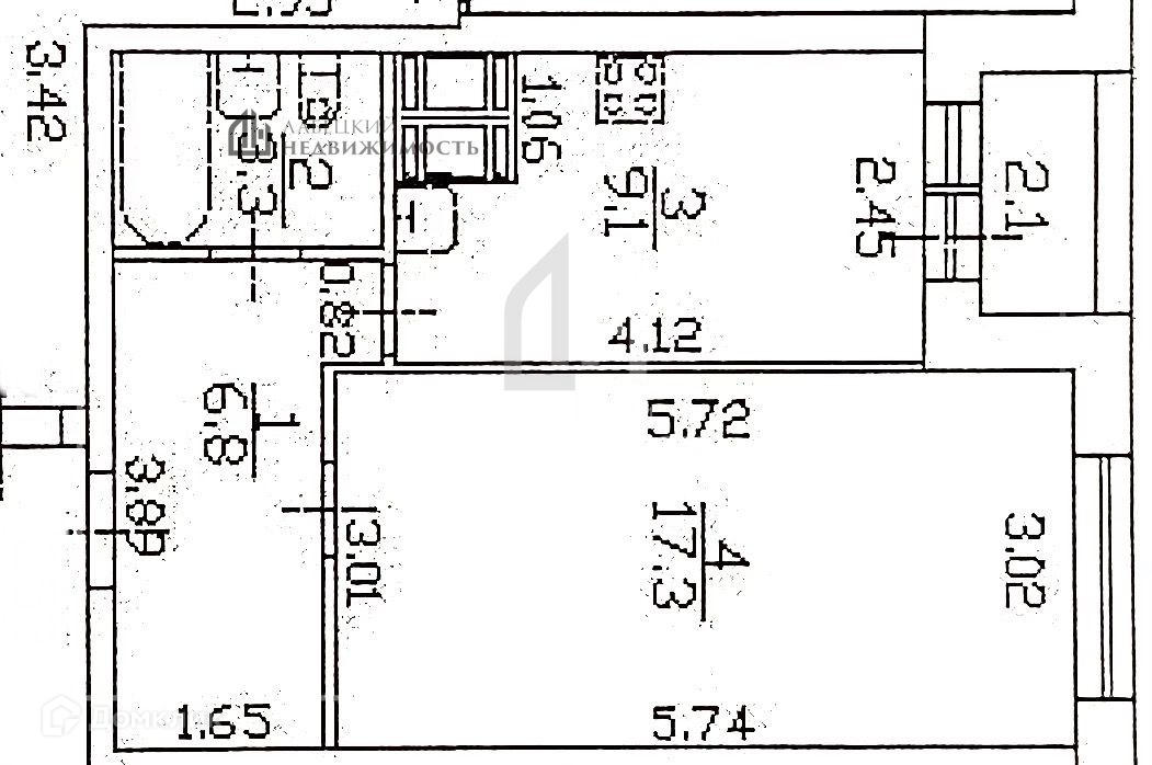 Жилая площадь 17.3 м2