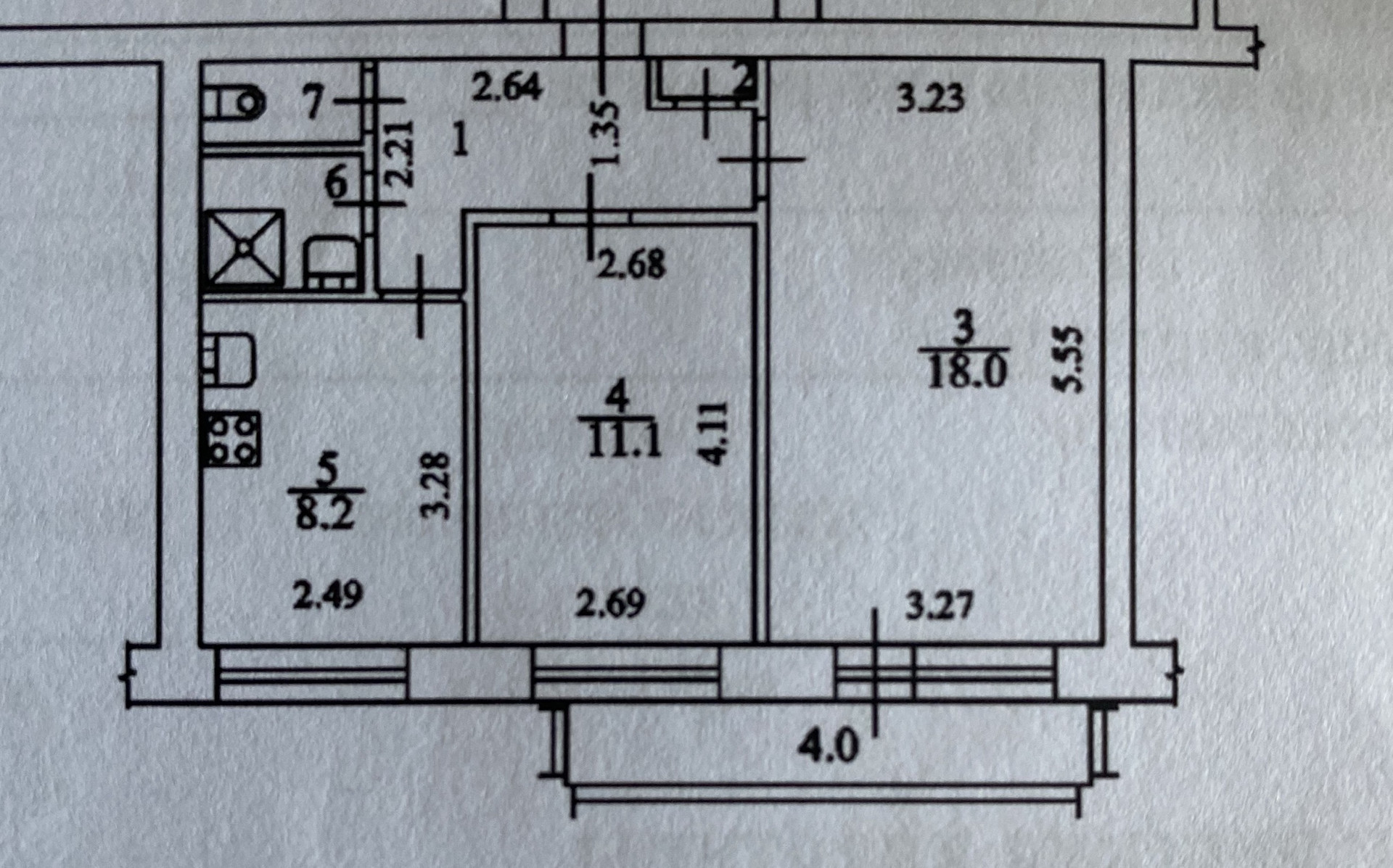 Комнаты изолированные 18 и 11,1 метров, кухня 8,2 метров.