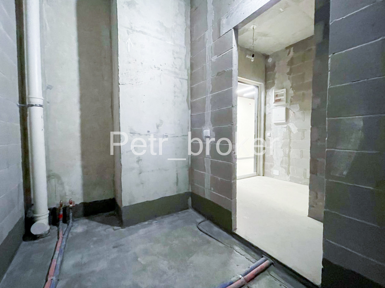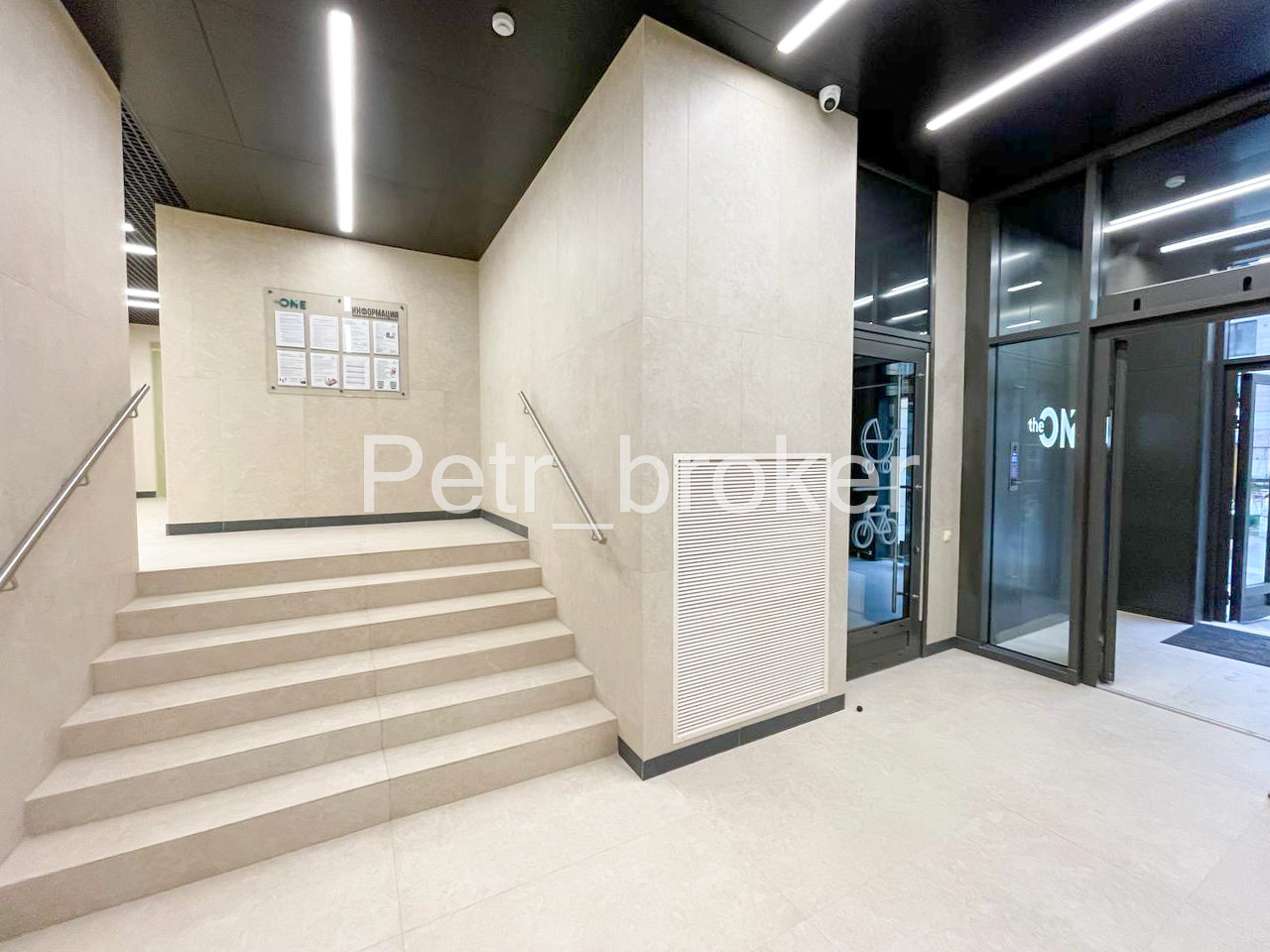 Спуск в подземный паркинг из подъезда.