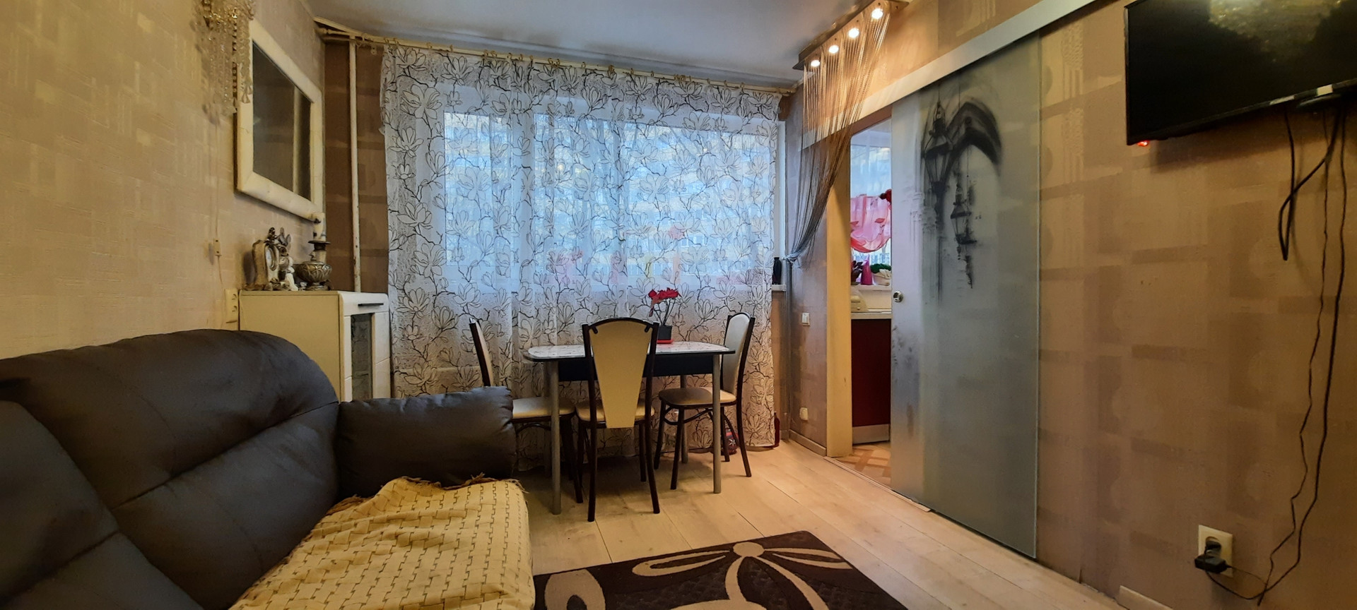 Перепланировка согласована и зарегистрирована. Одна из комнат имеет выход на кухню и отгорожена  от нее сдвижной дверью. Просторный совмещенный санузел 5м.кв, застекленная лоджия. Новая кухонная мебель входит в стоимость квартиры.