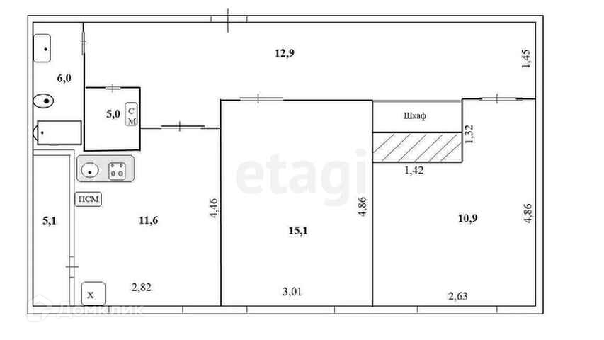 Общая площадь 60 м2