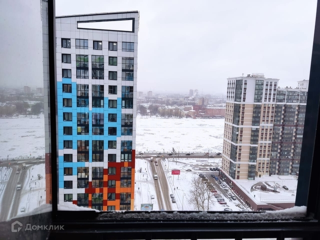 2й дом от набережной, 22 этаж, северо-западный угол здания. Вид на Неву, слегка урезанный соседним зданием.