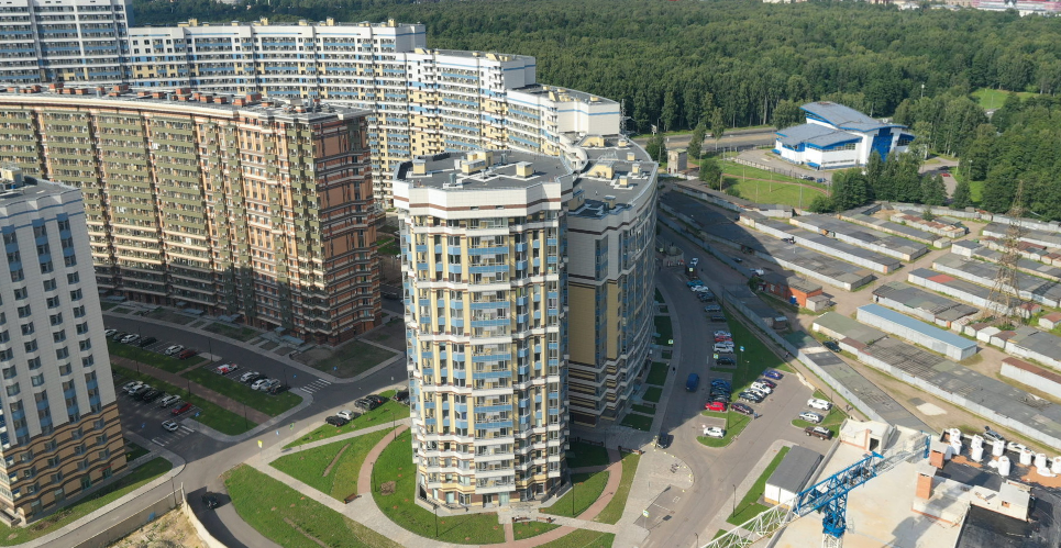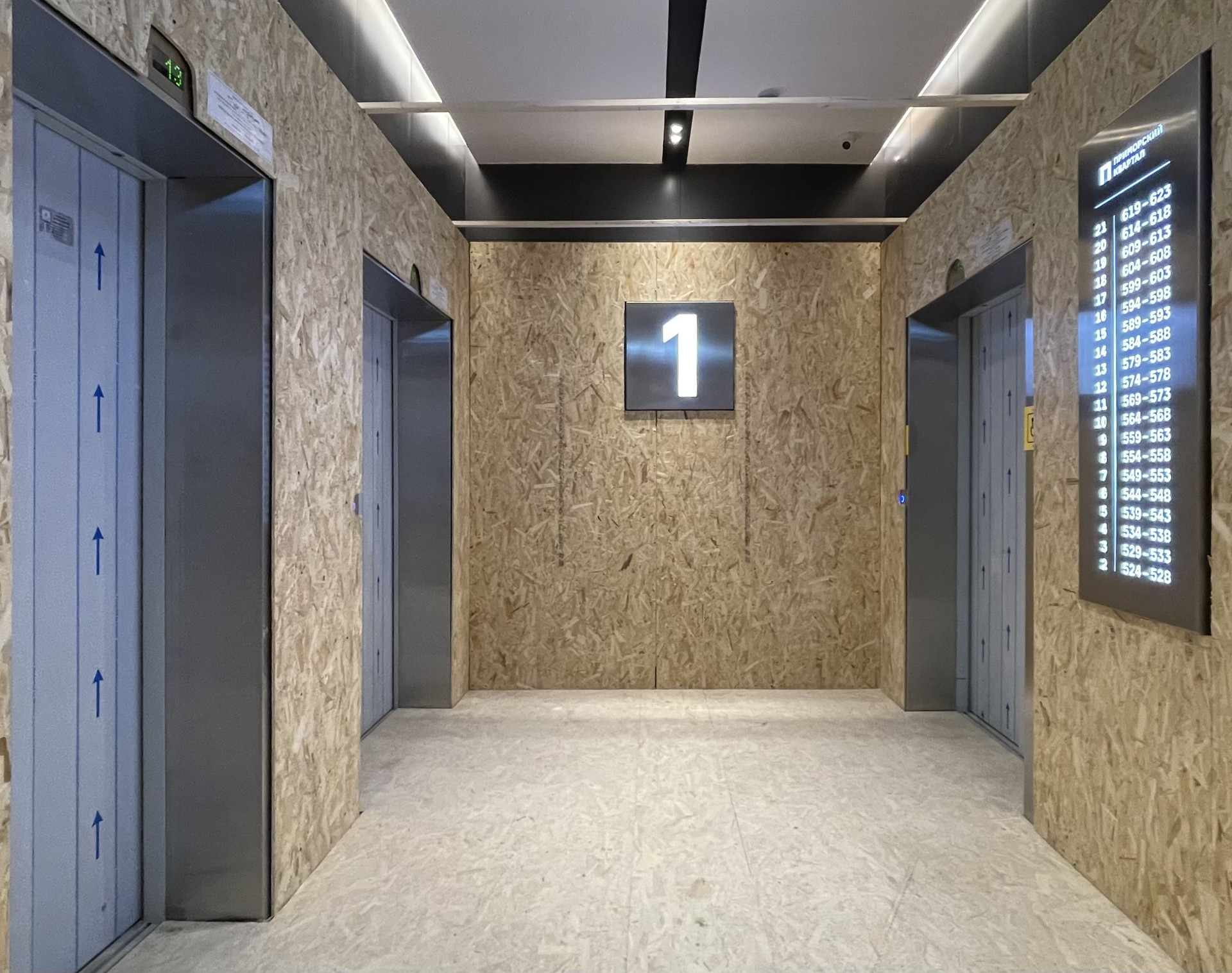 Дом Бизнес-класса возведен по монолитной технологии и с такой точностью, что проектная площадь квартиры отличается от действительной всего на 6 квадратных сантиметров. Прямо у входа в парадную располагается консьерж, а сразу за ним — колясочная и стилизованные почтовые ящики. Стены, пол, лифты и некоторые двери зашиты в OSB панель для защиты от возможных повреждений на тот период, пока жильцы ведут отделочные работы в своих квартирах.