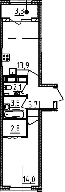 Общая площадь 43.7 м2