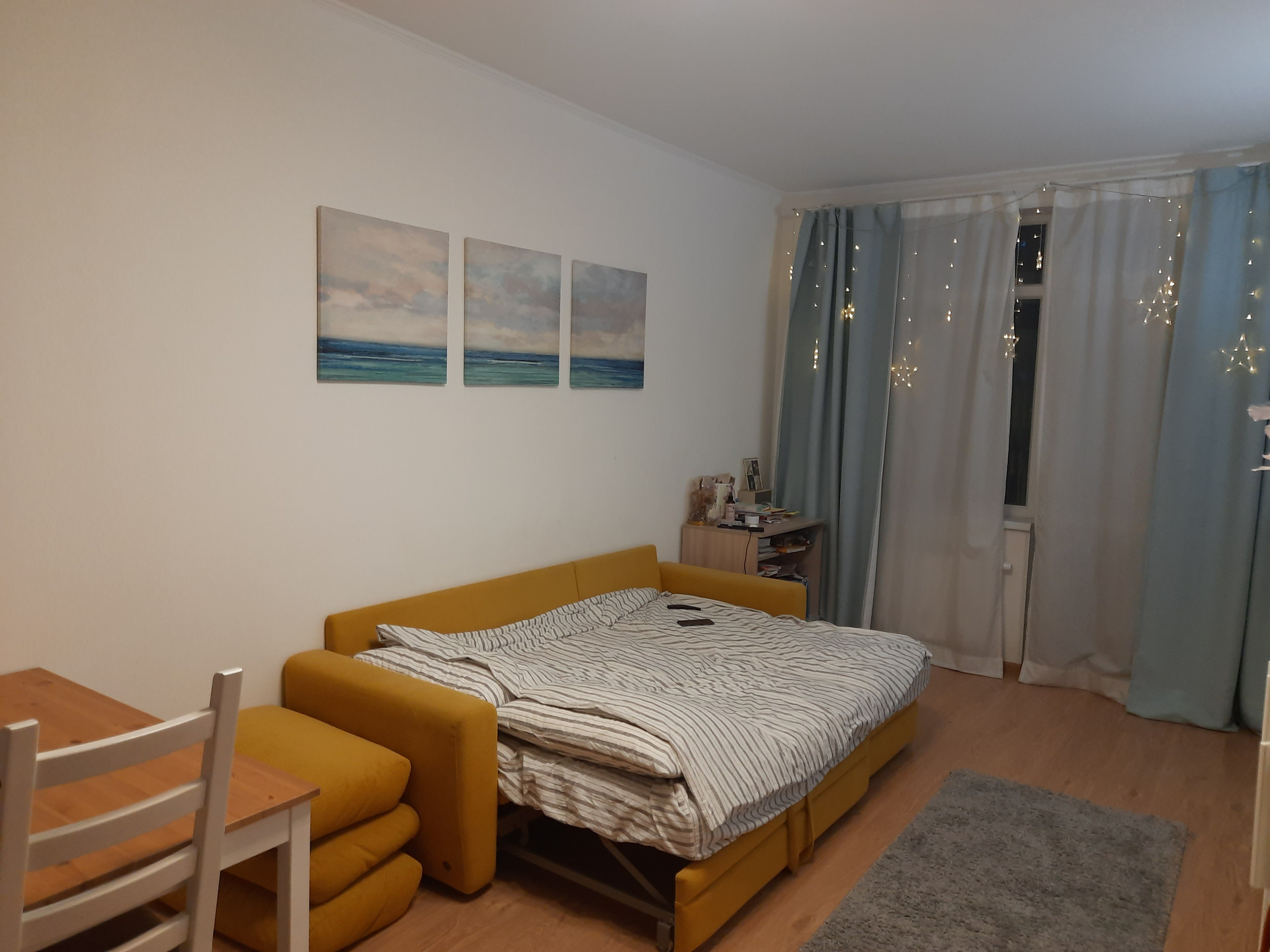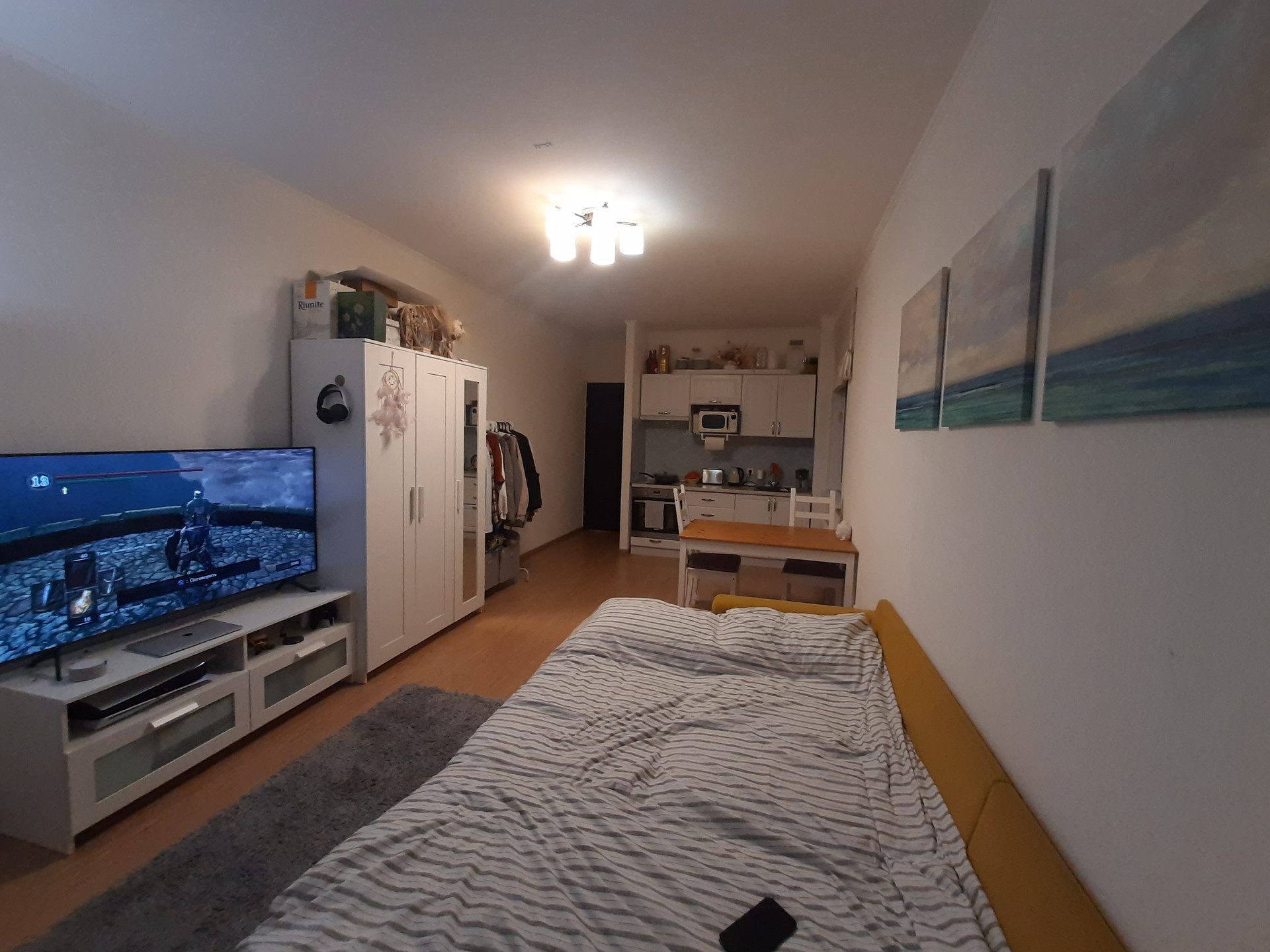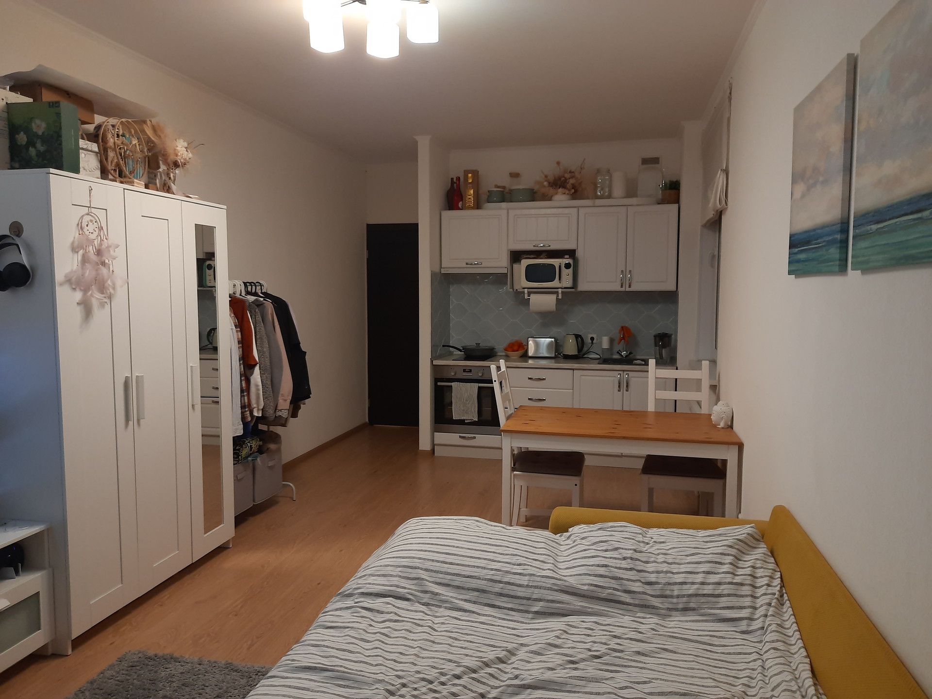 Замечательная и просторная квартира-студия с площадью, как у однокомнатной квартиры, в прекрасном и зеленом районе Санкт-Петербурга, с развитой инфраструктурой и в пешеходной доступности от залива и Южно-Приморского парка. Квартира с евроремонтом, продается вместе с обстановкой, мебелью и техникой (кроме телевизора), полностью готова к проживанию. Сейчас квартира сдается в аренду хорошим людям, они в курсе продажи. Квартира находится в отличном состоянии, не прокурена, без запахов, не затерта, просто идеальна для жизни, как для себя так и для сдачи в аренду. Общая площадь квартиры, без учета лоджии - 28,7 кв.м, с учетом лоджии - 32.7 кв.м. Комната площадью 22 кв.м., правильно-прямоугольная шириной 3.2 метра, с жилой зоной 18 кв.м. и кухонной зоной 4 кв.м. В комнате два окна - одно в кухонной зоне и второе с выходом на балкон - в жилой зоне, что позволяет при необходимости, в будущем, зонировать комнату на кухонную и жилую зоны. Плюс застекленная лоджия около 4 кв.м. Из двух окон квартиры вид на южную и западную стороны (на зелень и двор). В доме есть подземный паркинг, в который можно спуститься на бесшумном лифте не выходя на улицу. Вся инфраструктура рядом - школа, детский сад, магазины и рестораны, в том числе ТРК Жемчужная плаза. Рядом, в транспортной доступности Петергоф, с его парками. Высокая транспортная доступность! Недалеко метро Автово, Ленинский пр. и пр. Ветеранов. Один собственник, материнский капитал не использовался. Без обременений. В собственности более пяти лет. Прямая продажа. Документы готовы, готовы быстро выйти на сделку. Показы по договоренности, звоните!.