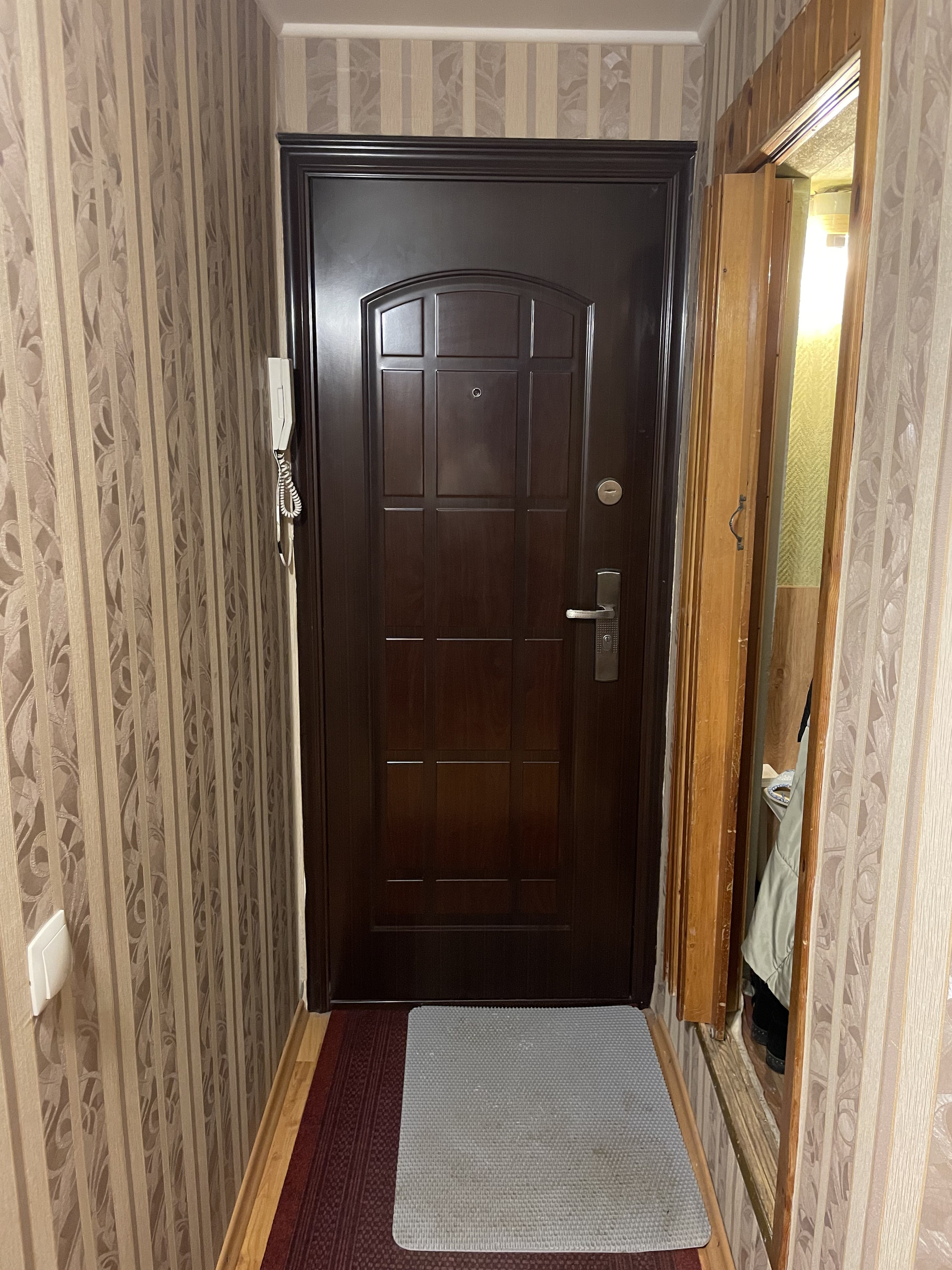 Просторный коридор, встроенная кладовая и большой шкаф. Остекленный балкон 2,4 м2.