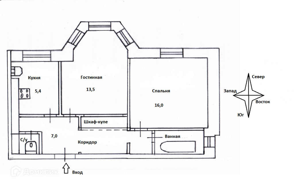 Площадь кухни 5.4 м2
