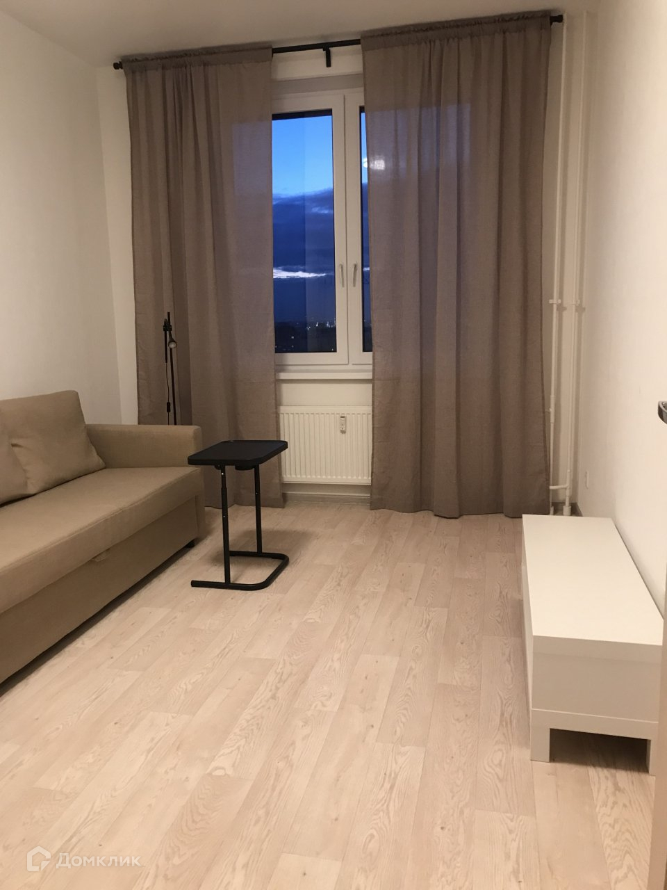 окно: установлены гардины со шторами/