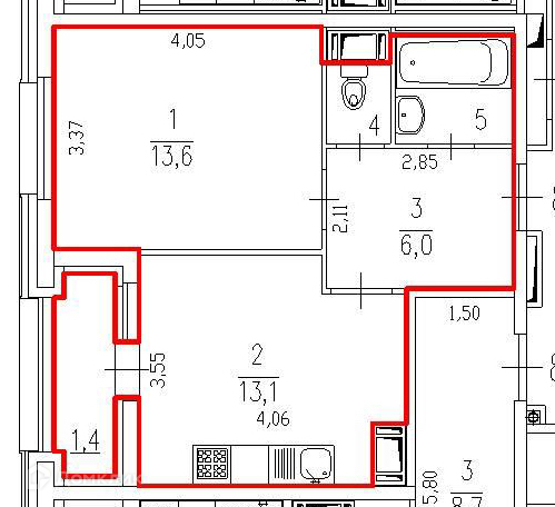Площадь кухни 13.1 м2