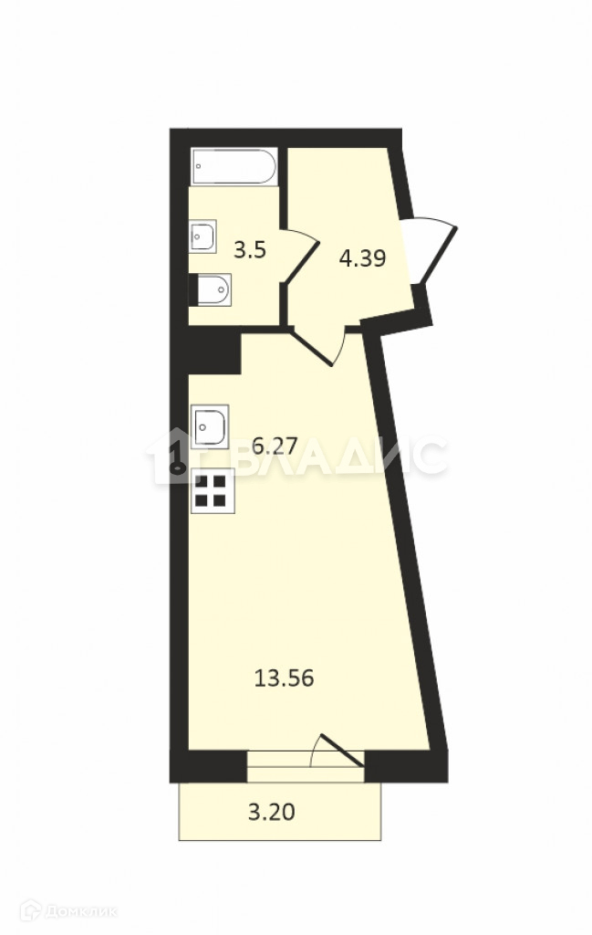 Площадь кухни 6.27 м2