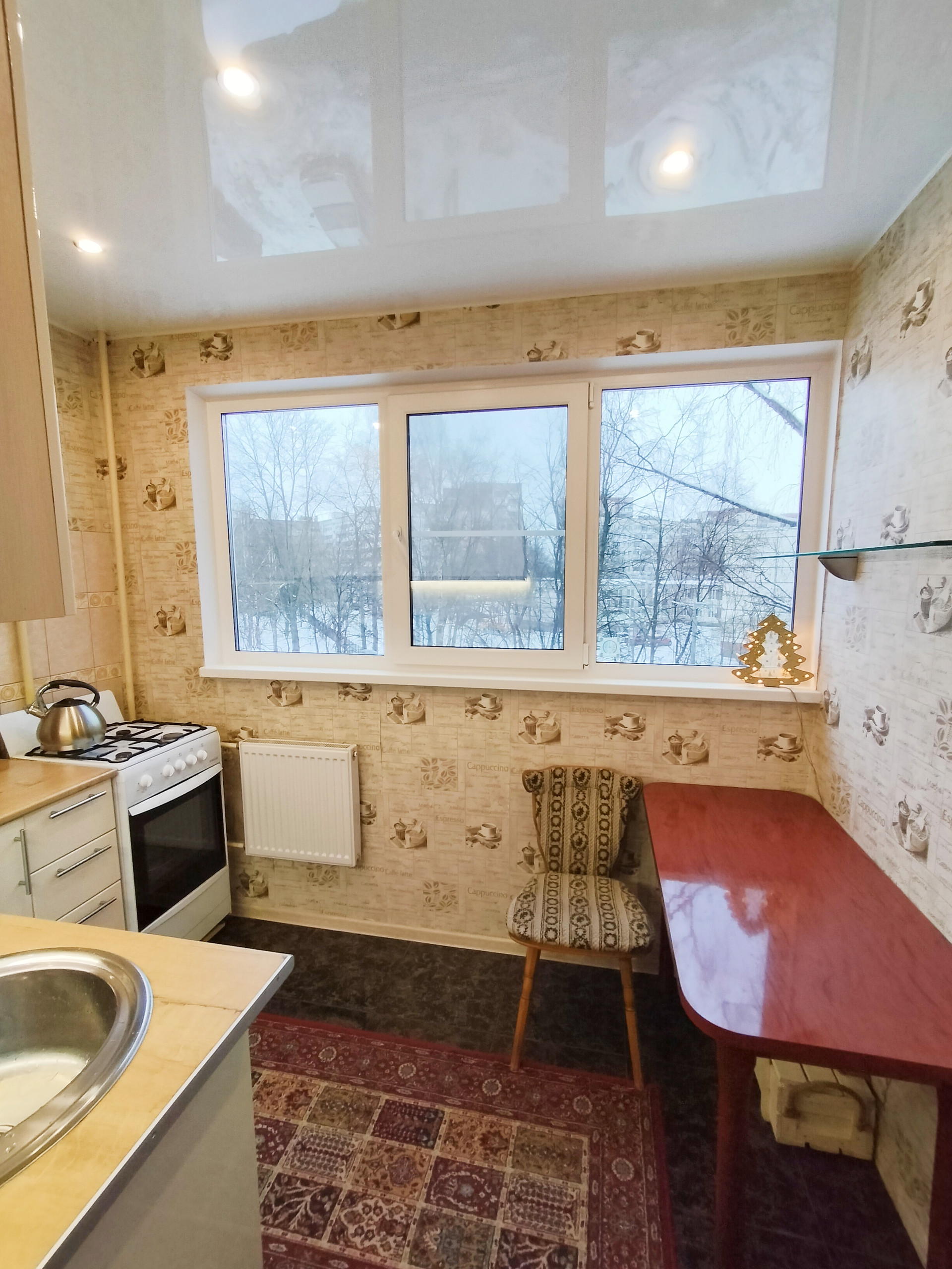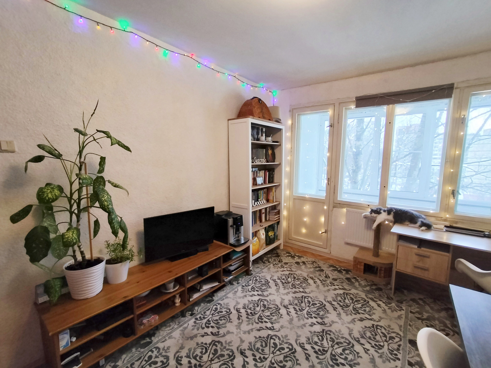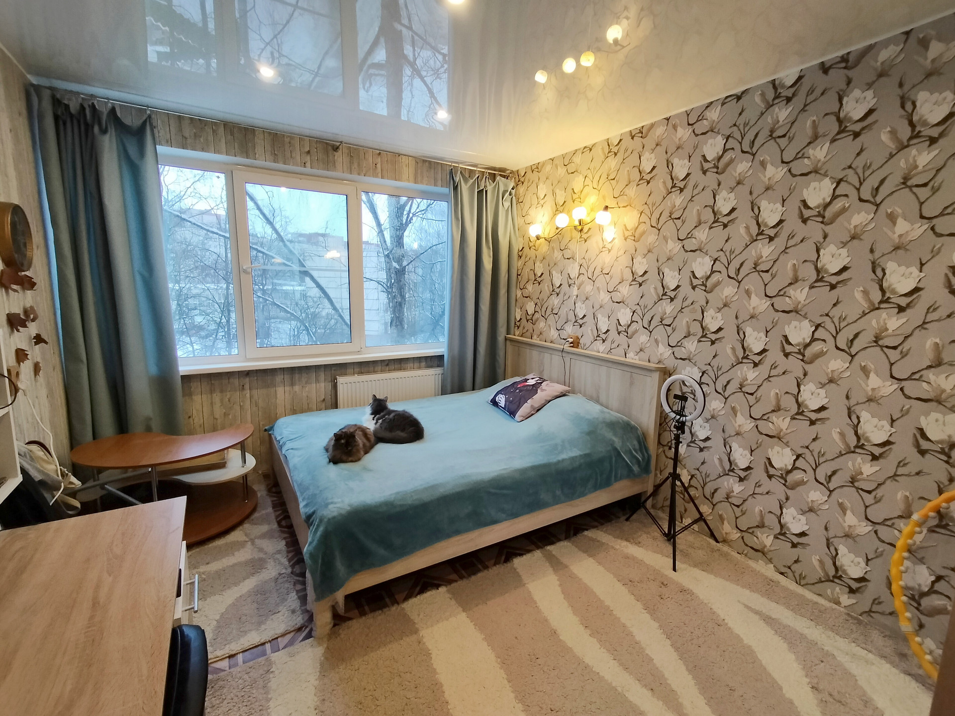 Комнаты изолированные: 13, 15 и 17.7 кв.м, коридор 7.8 кв.м. Окна выходят на две стороны, во двор и на парковку у Пятёрочки.