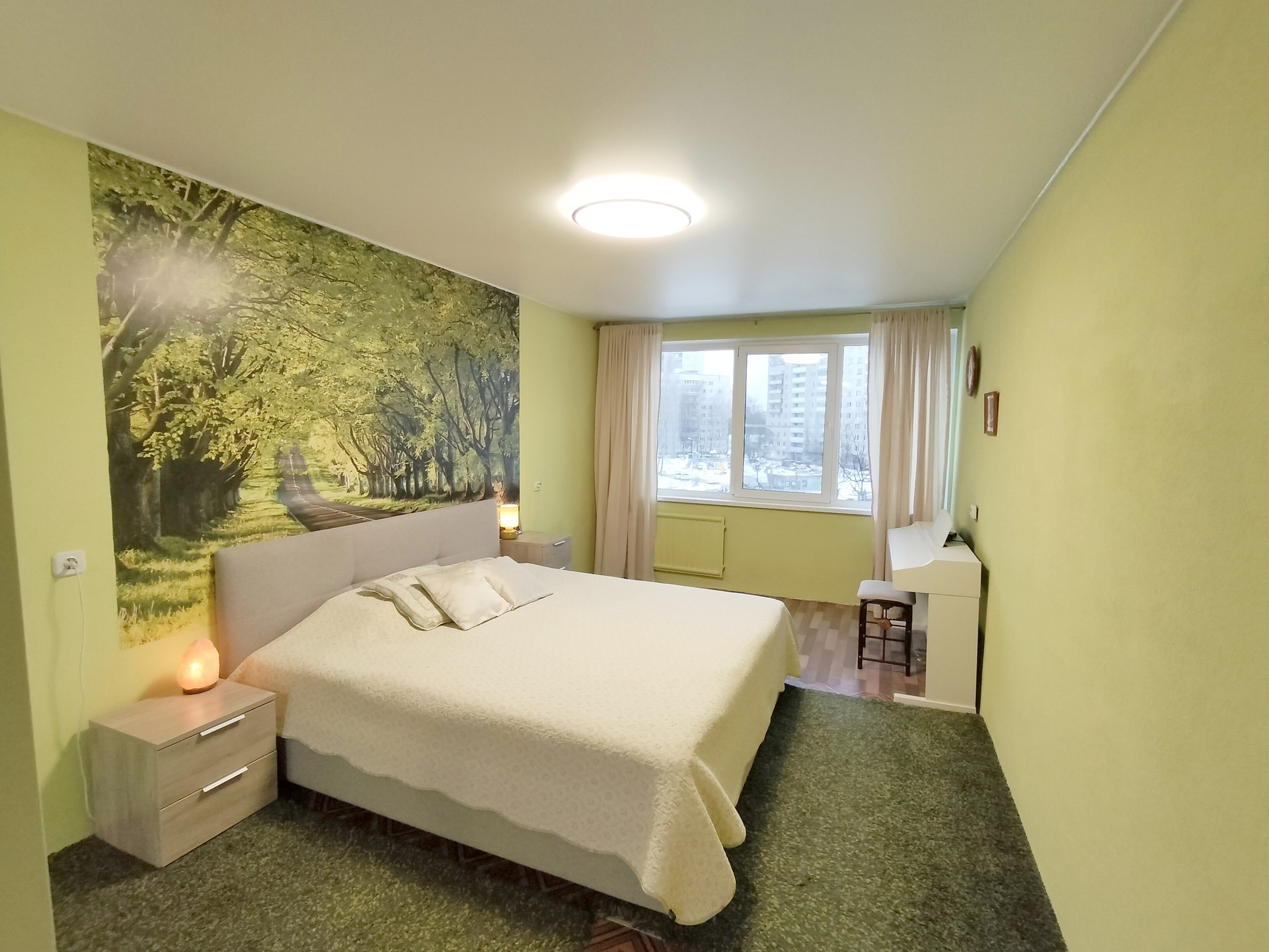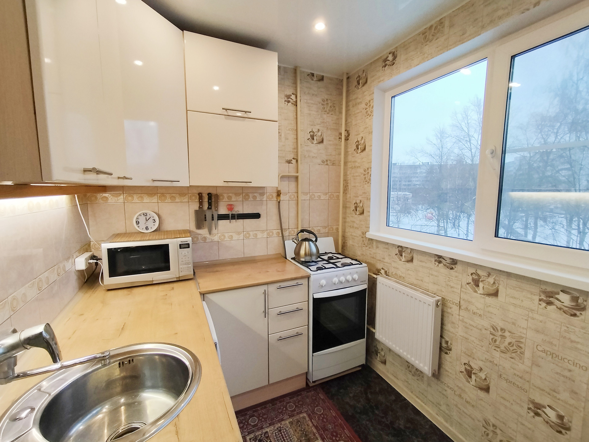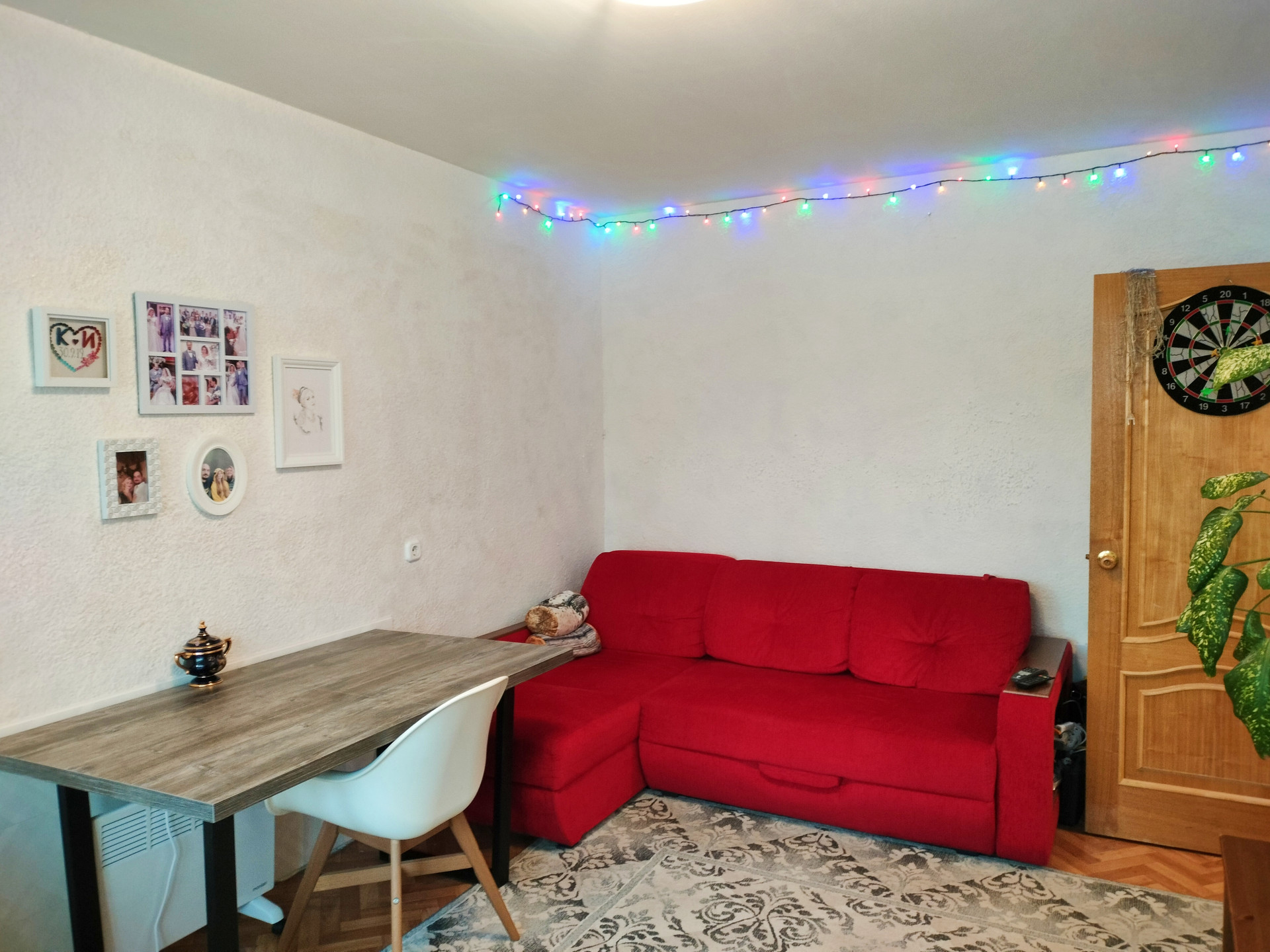 Комнаты изолированные: 13, 15 и 17.7 кв.м, коридор 7.8 кв.м. Окна выходят на две стороны, во двор и на парковку у Пятёрочки.