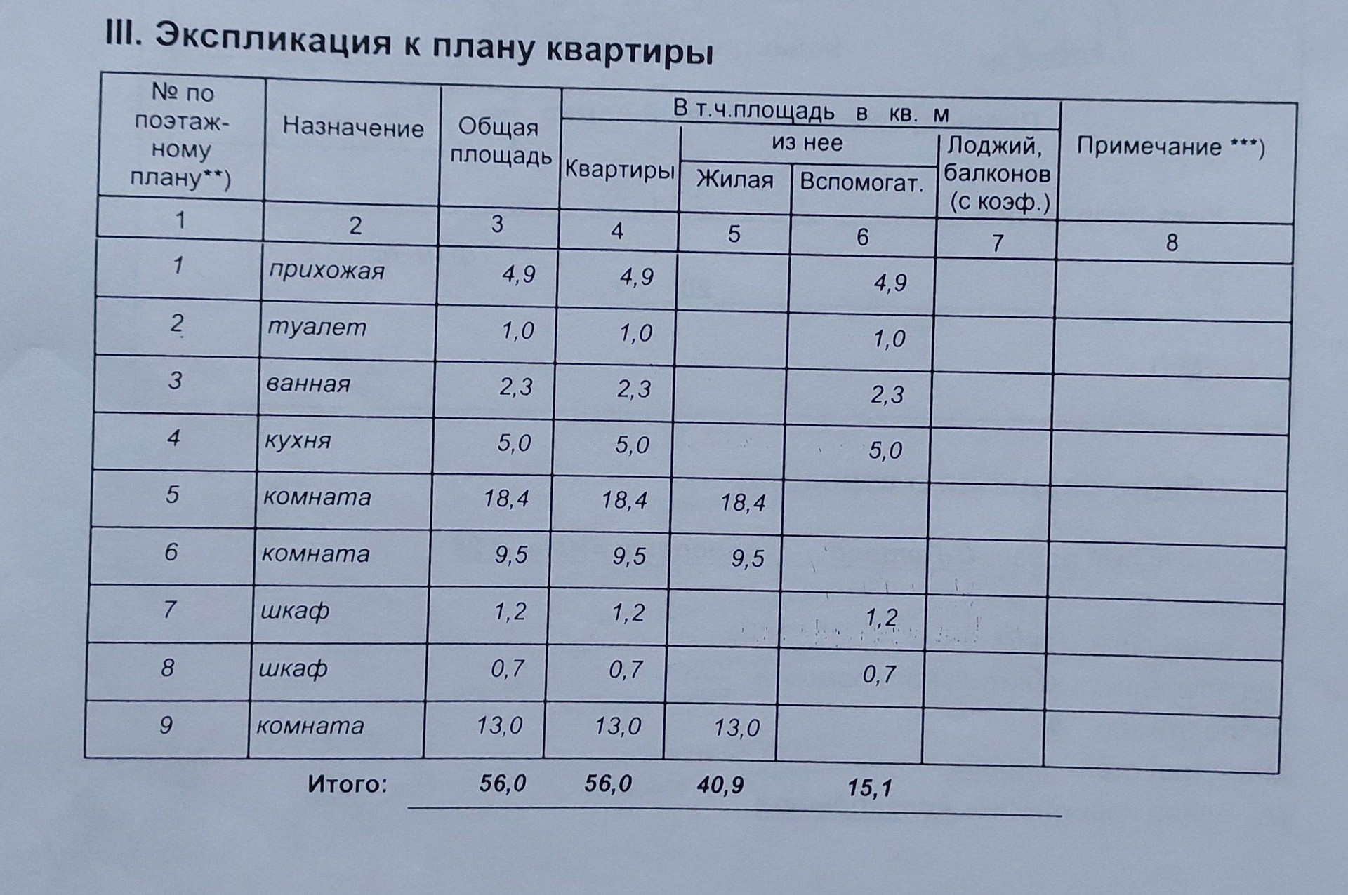 Общая площадь 56 м2
